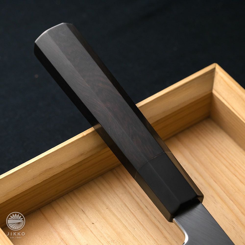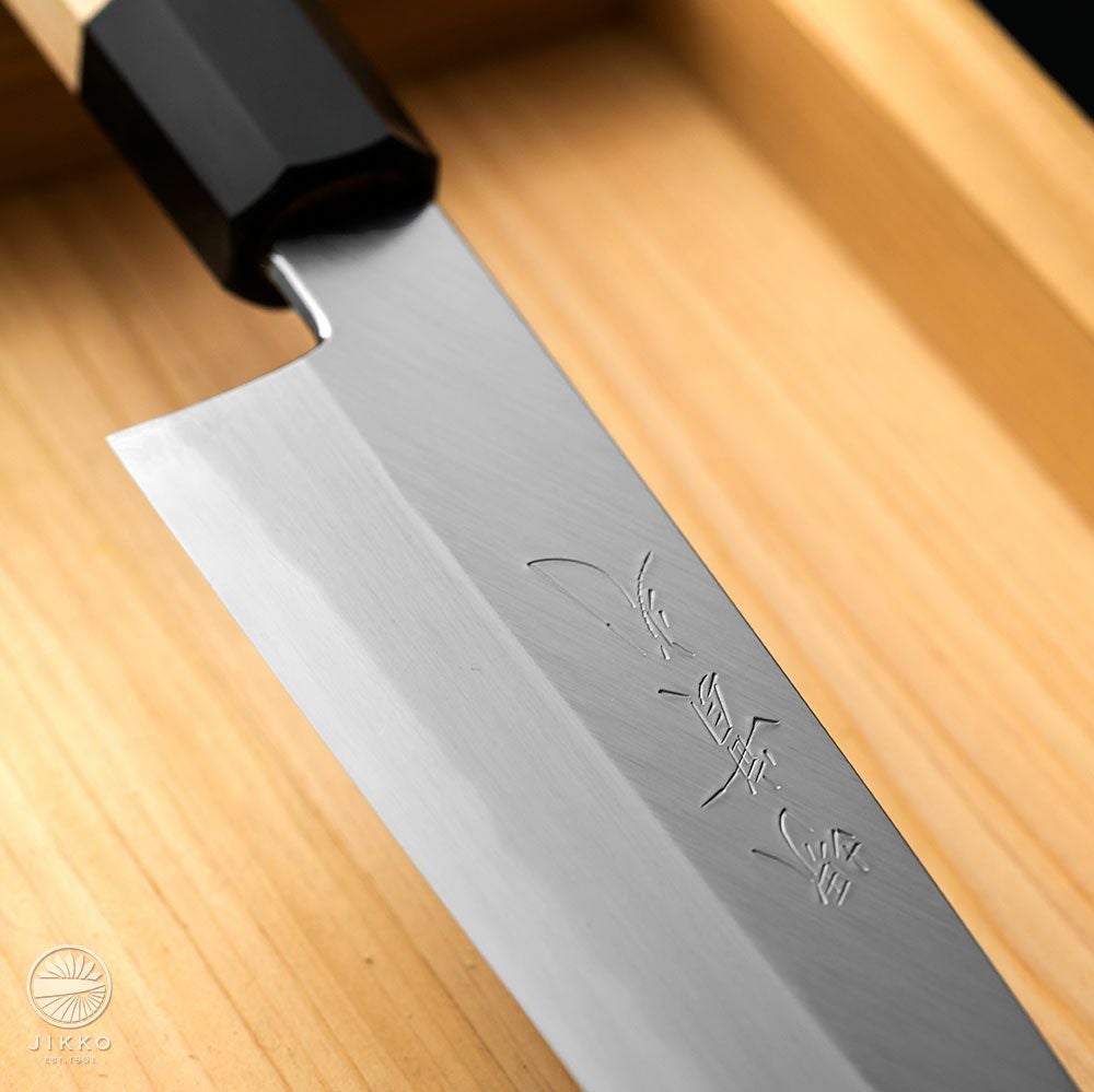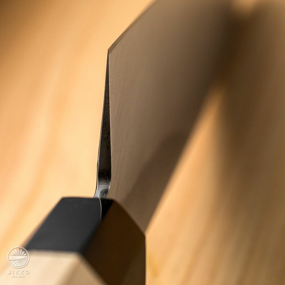 他の画像を見る 【arata 青】片刃 牛刀 青紙2号 当店価格 ¥ 70,070 税込 +詳しく見る 牛刀は両刃が普通ですが、片刃仕様にしているので切れ味抜群です。切れ味と持続性に優れている青紙2号を使用しています。 詳細を見る お気に入りに登録する