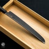 錆に強い銀三を使用した銀座の刺身先丸包丁です。刃先は先丸タイプになります。