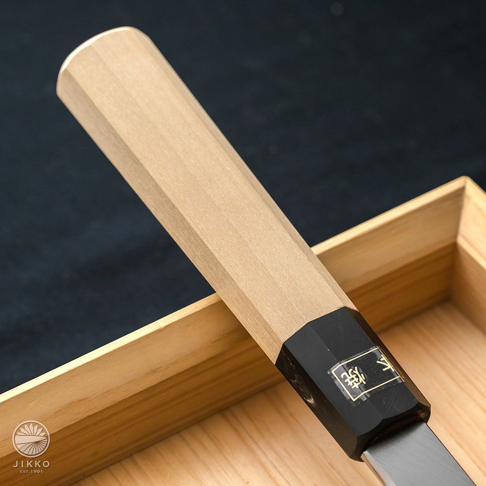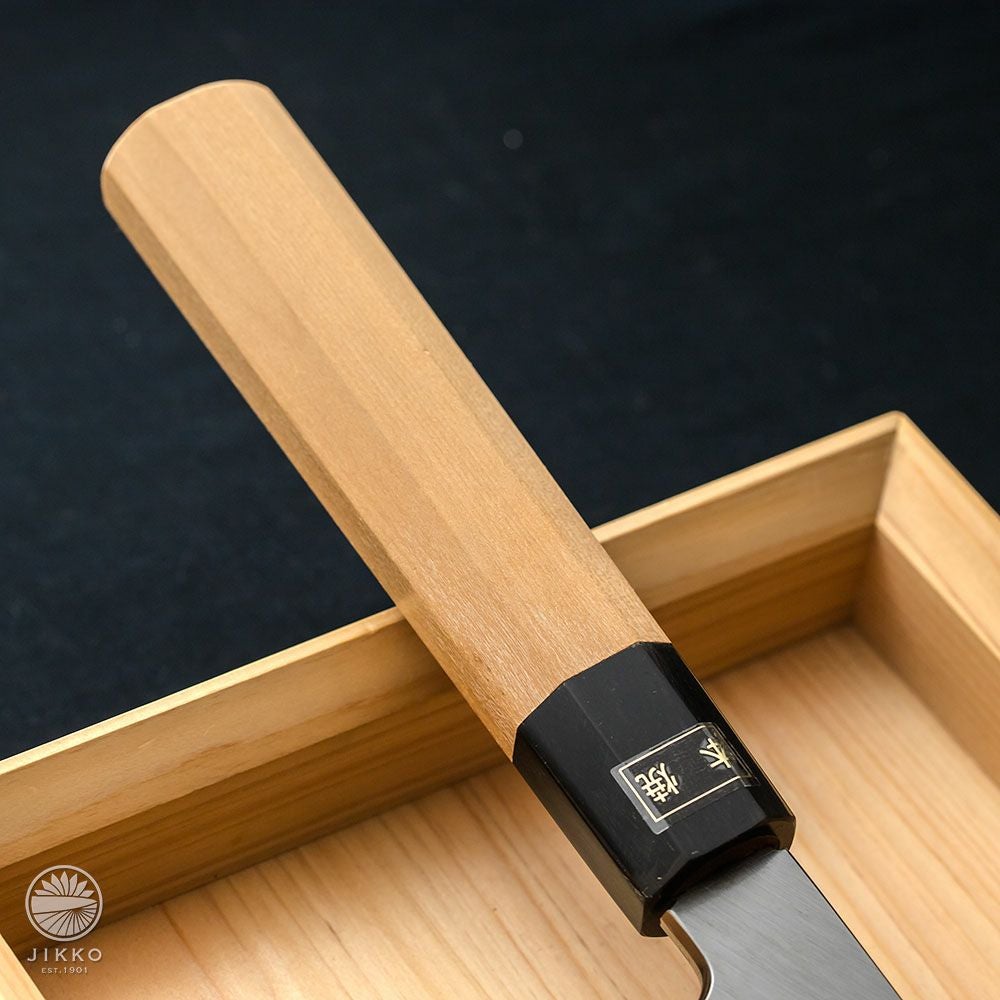 白紙3号の鋼材を使用した本焼包丁です。本焼の中で最も研ぎやすく、一番リーズナブルな本焼です。