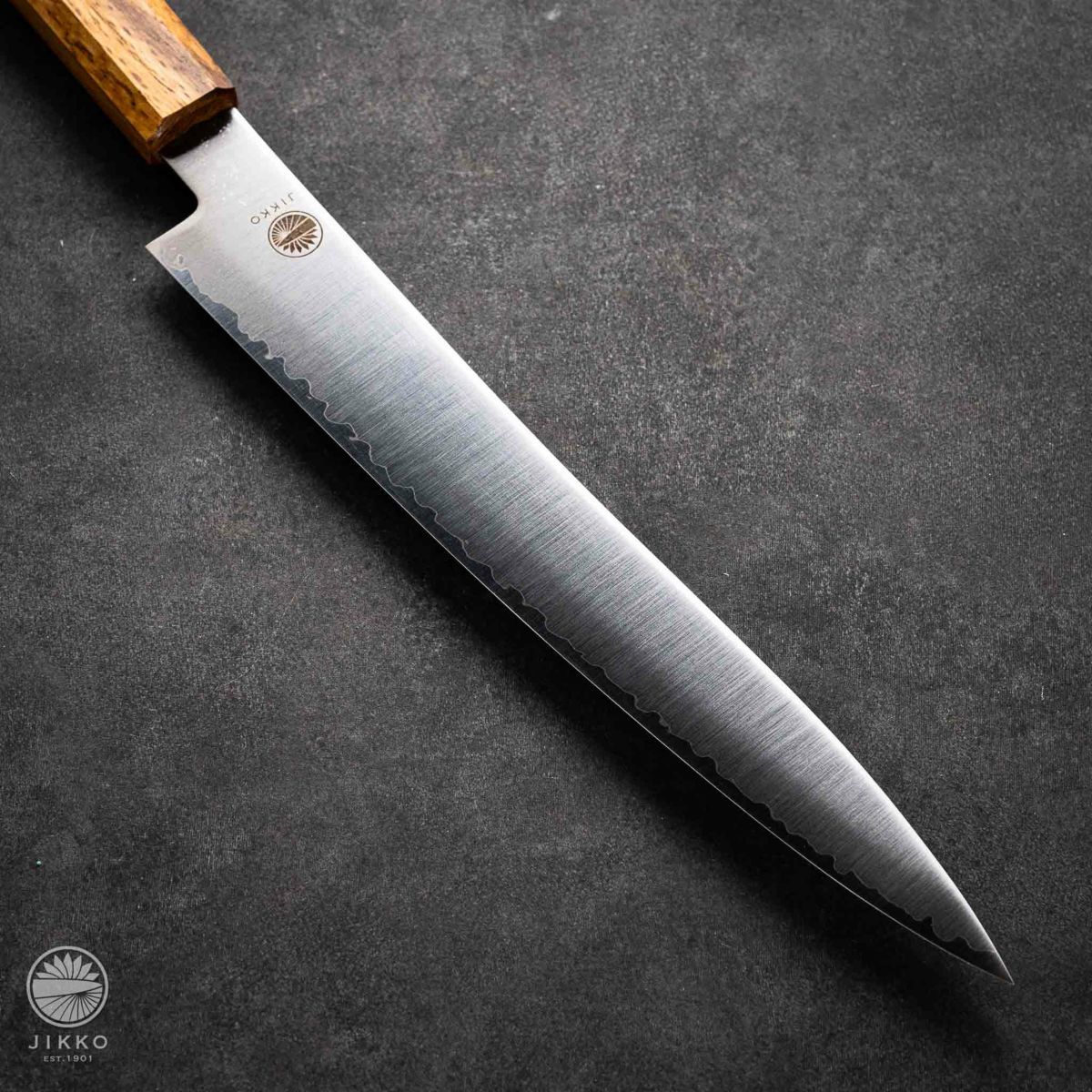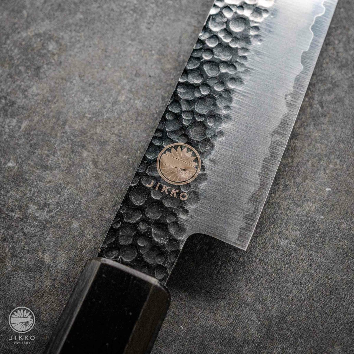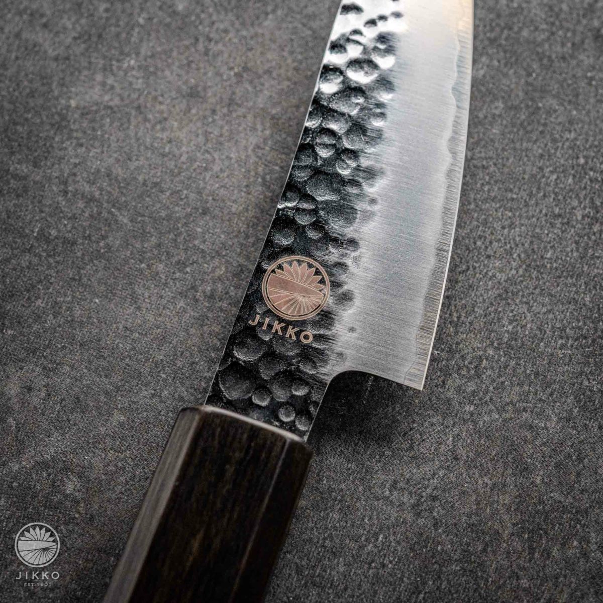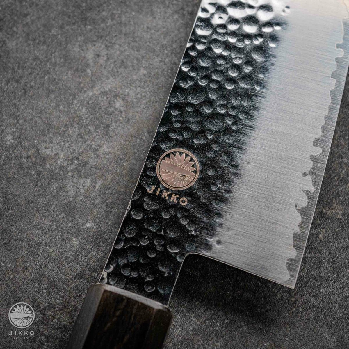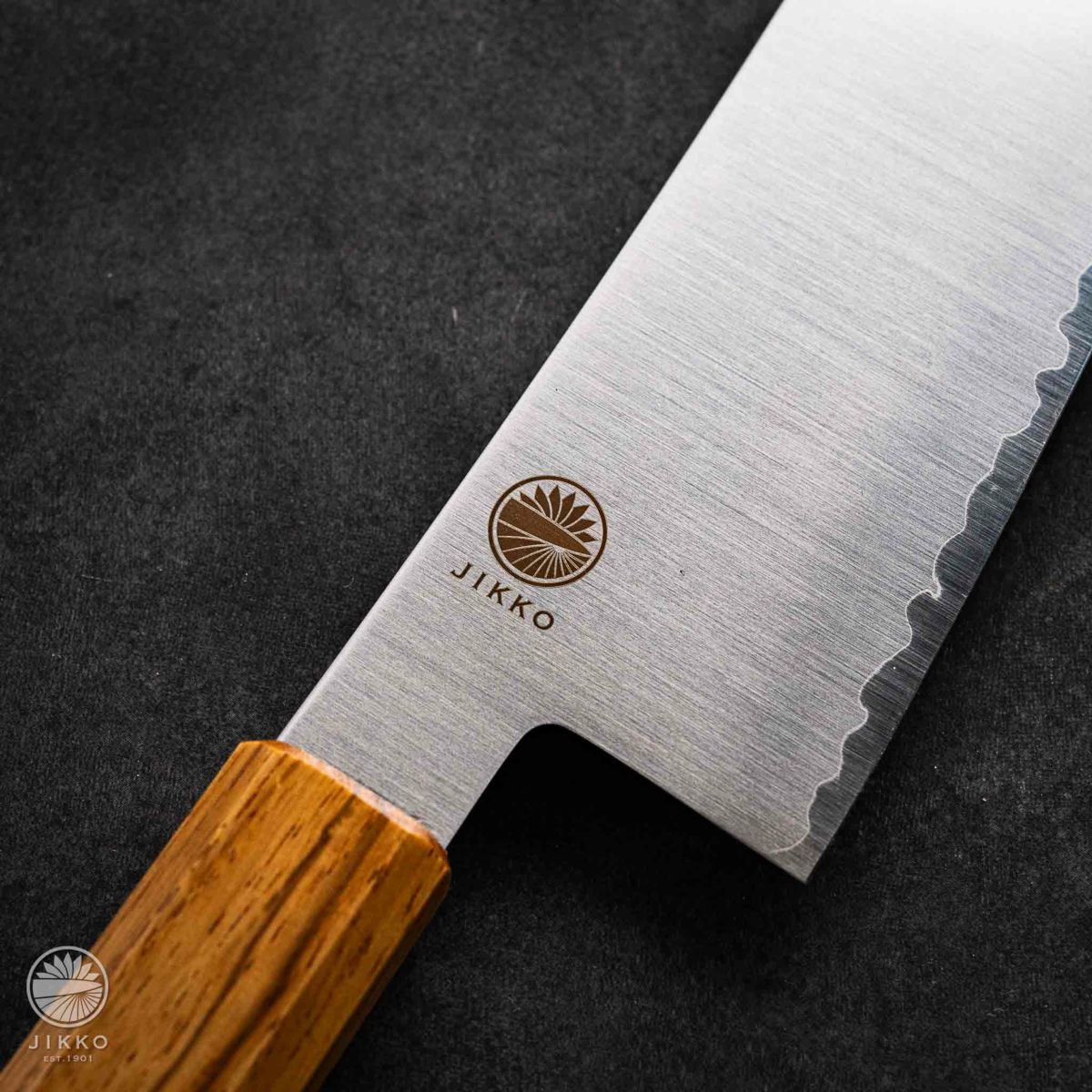 JIKKO型は和包丁をイメージして刃の背部分を反らせたオリジナルの形状をしています。表面が磨いている物と凸凹した2タイプございます。