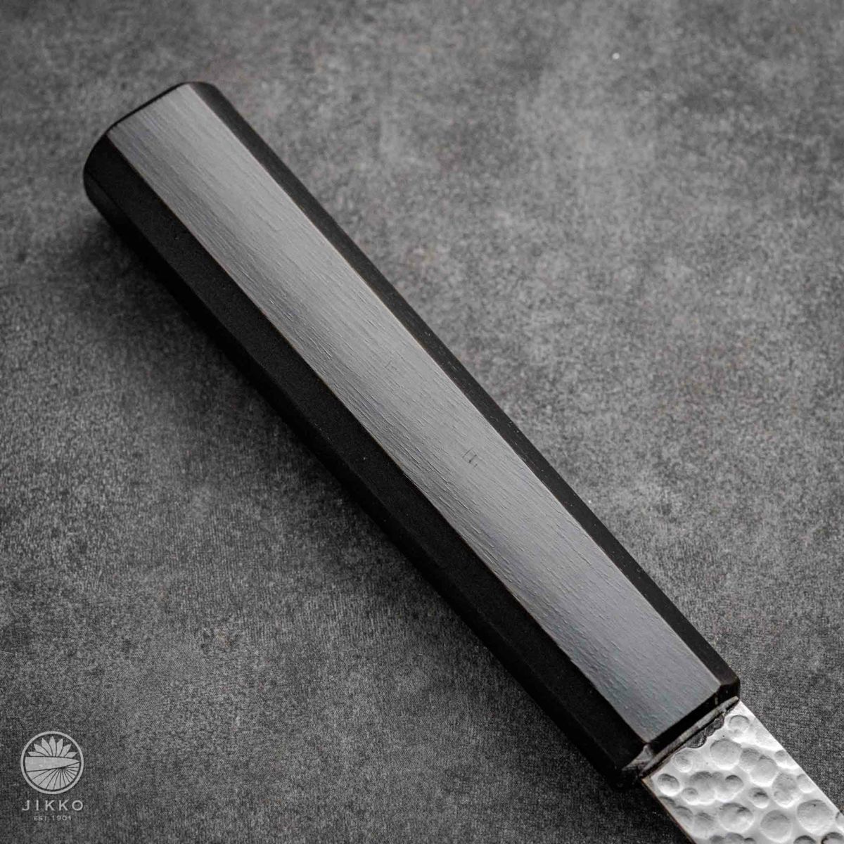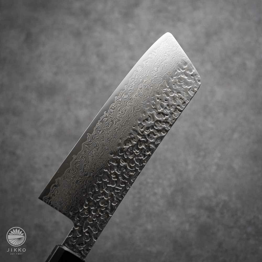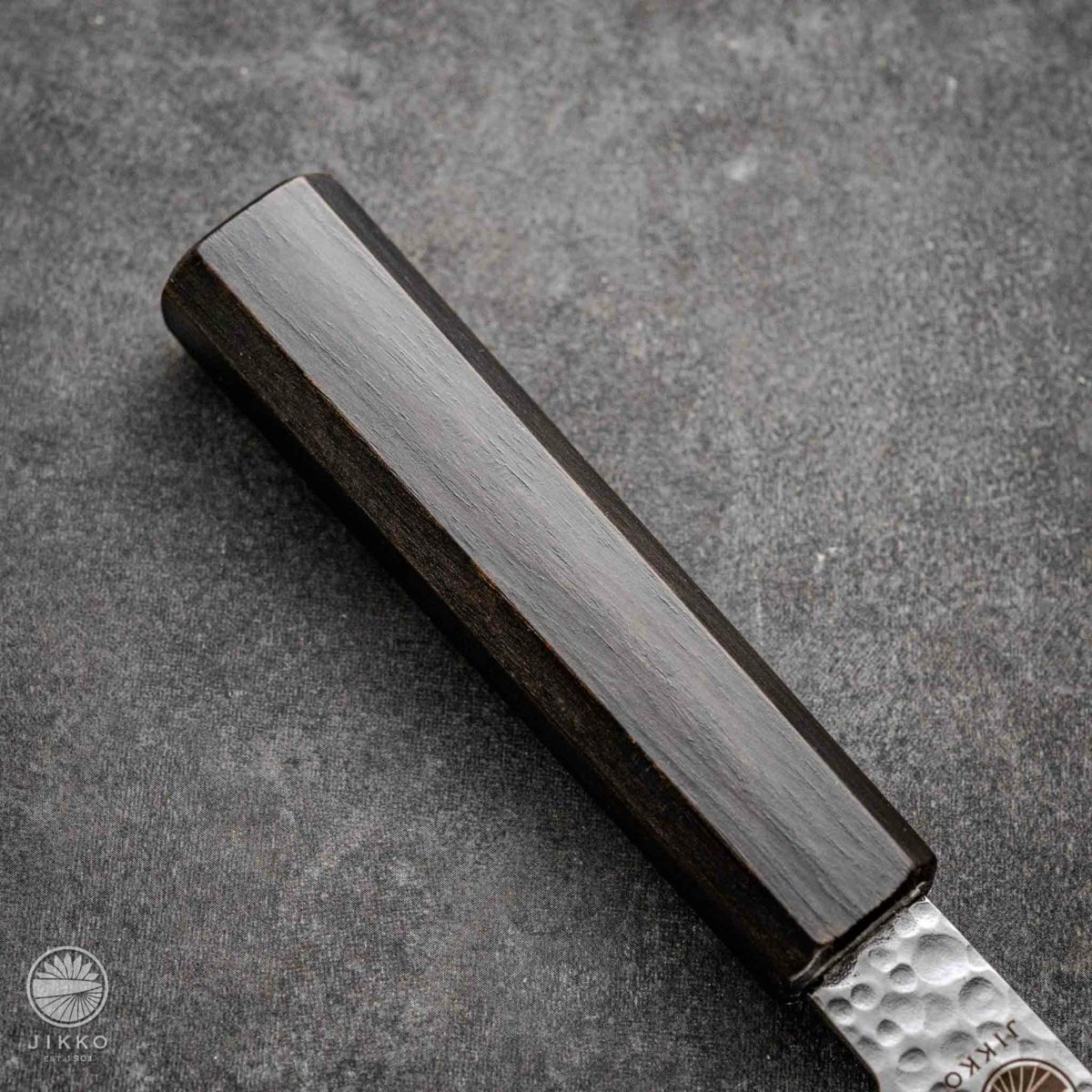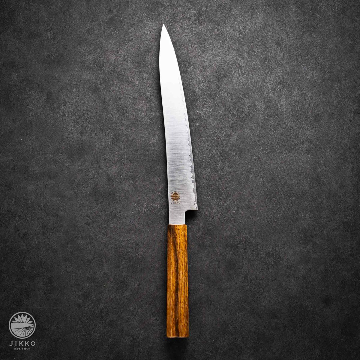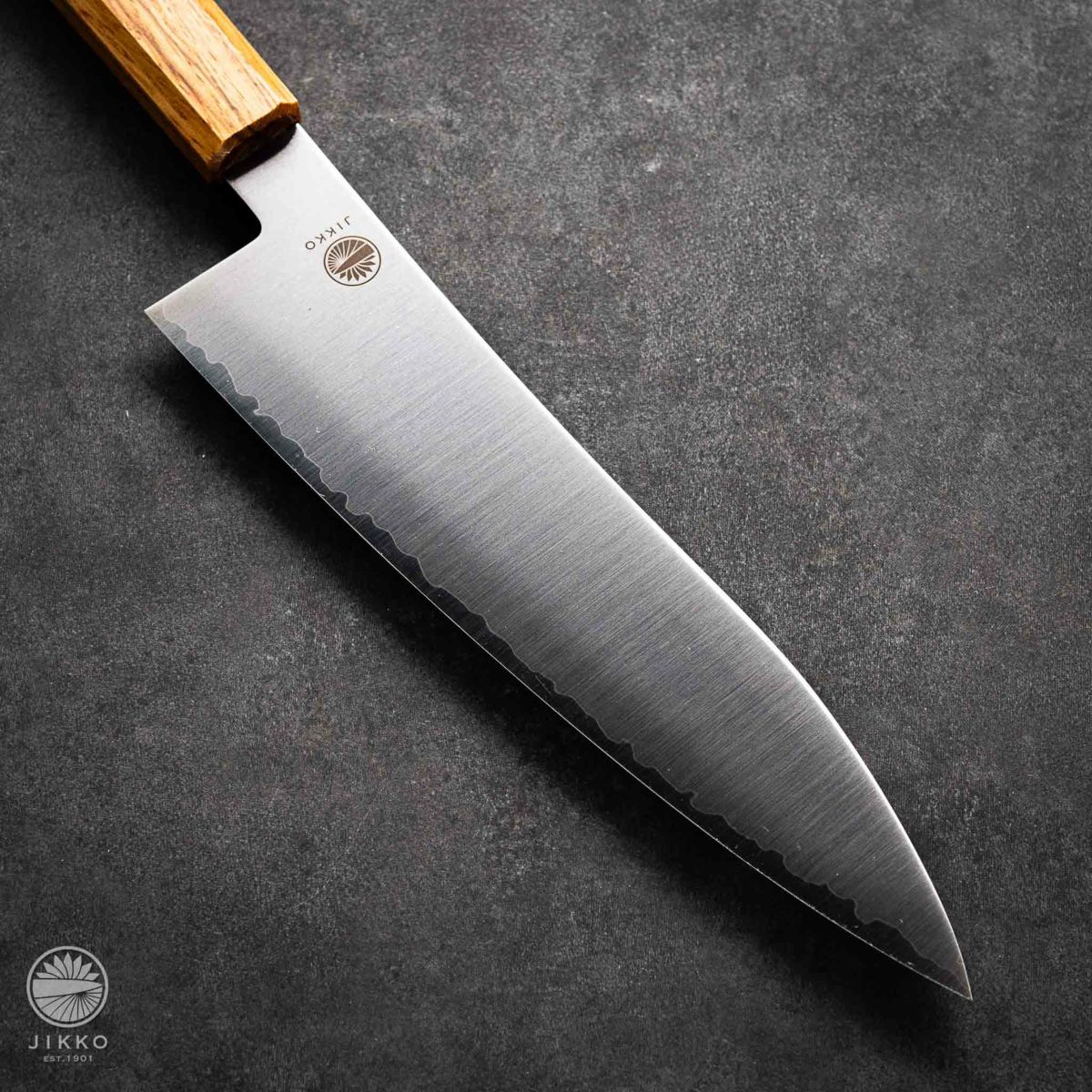 JIKKO型は和包丁をイメージして刃の背部分を反らせたオリジナルの形状をしています。表面が磨いている物と凸凹した2タイプございます。