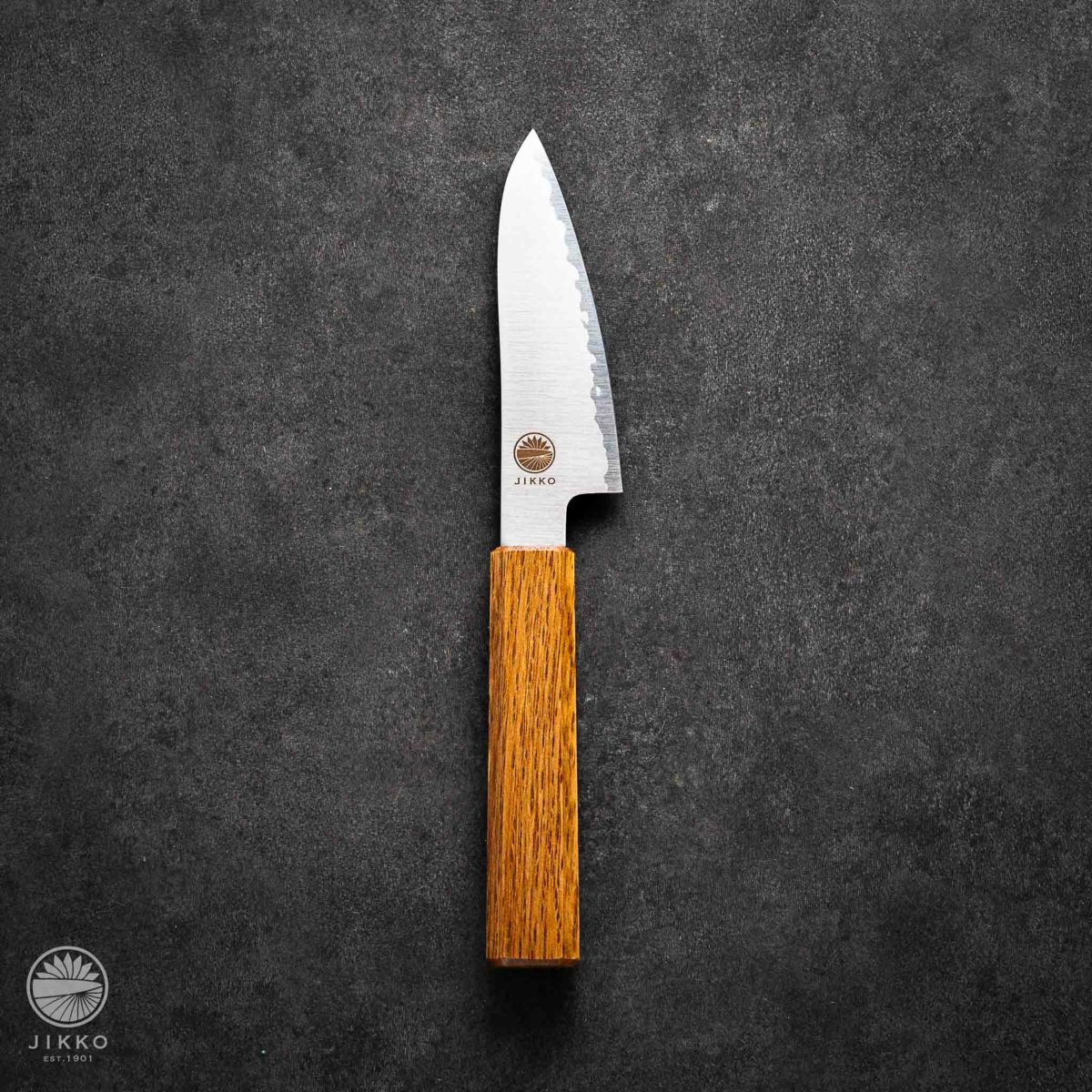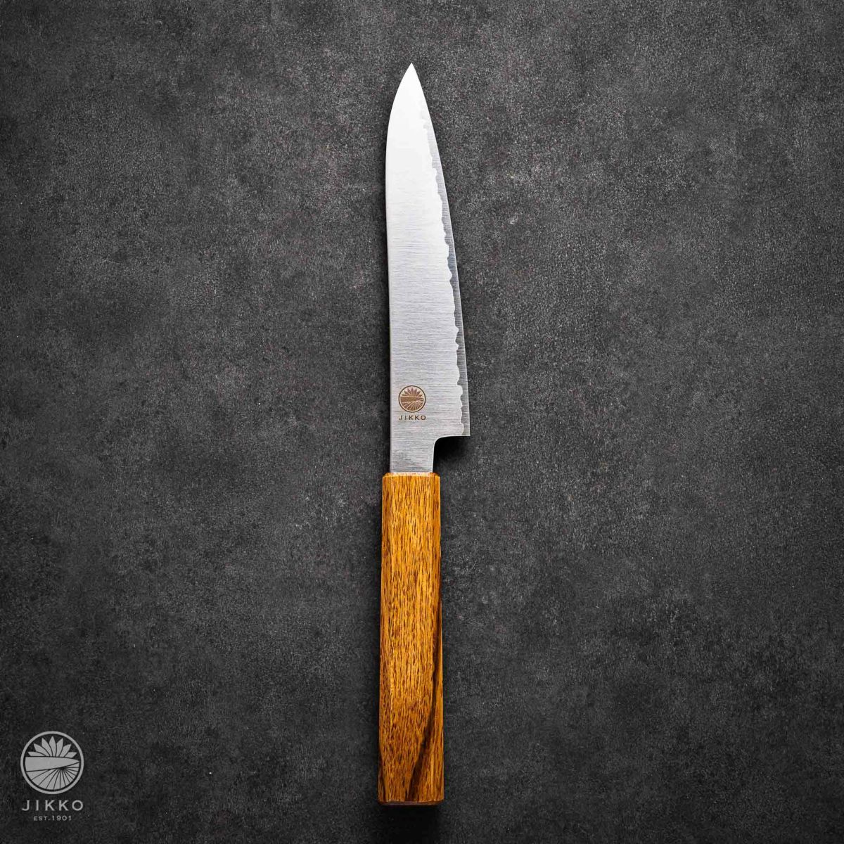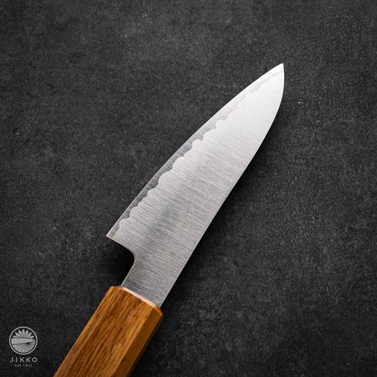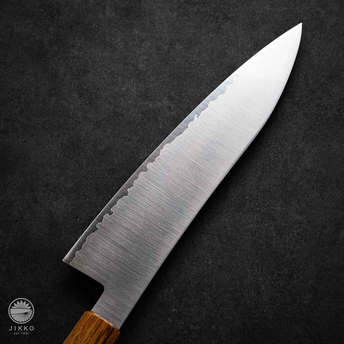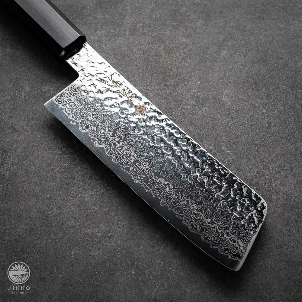 JIKKO型は和包丁をイメージして刃の背部分を反らせたオリジナルの形状をしています。表面が磨いている物と凸凹した2タイプございます。