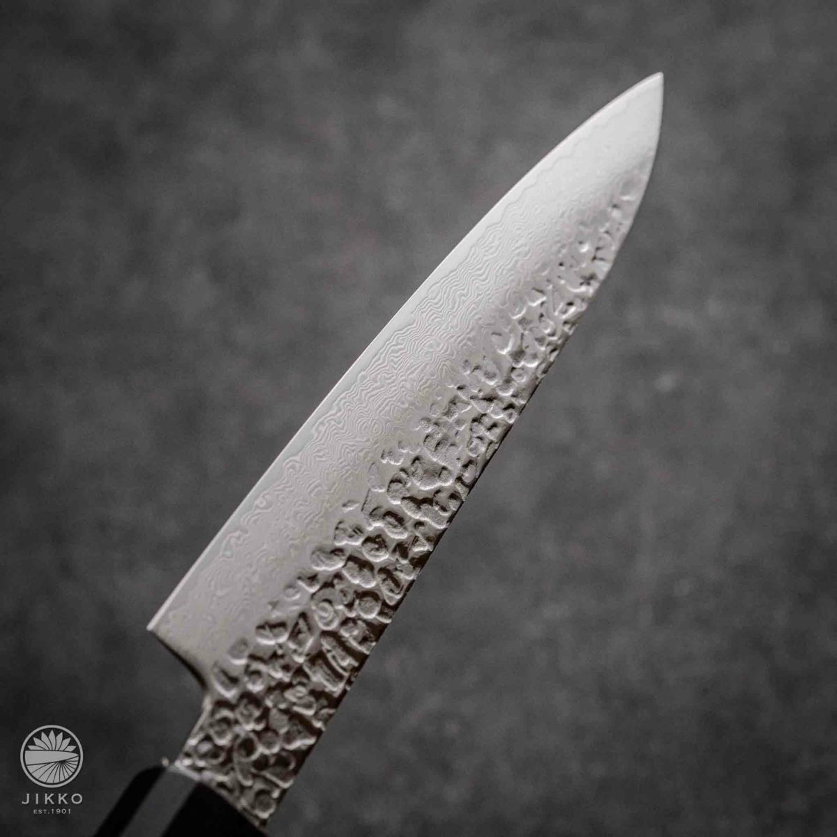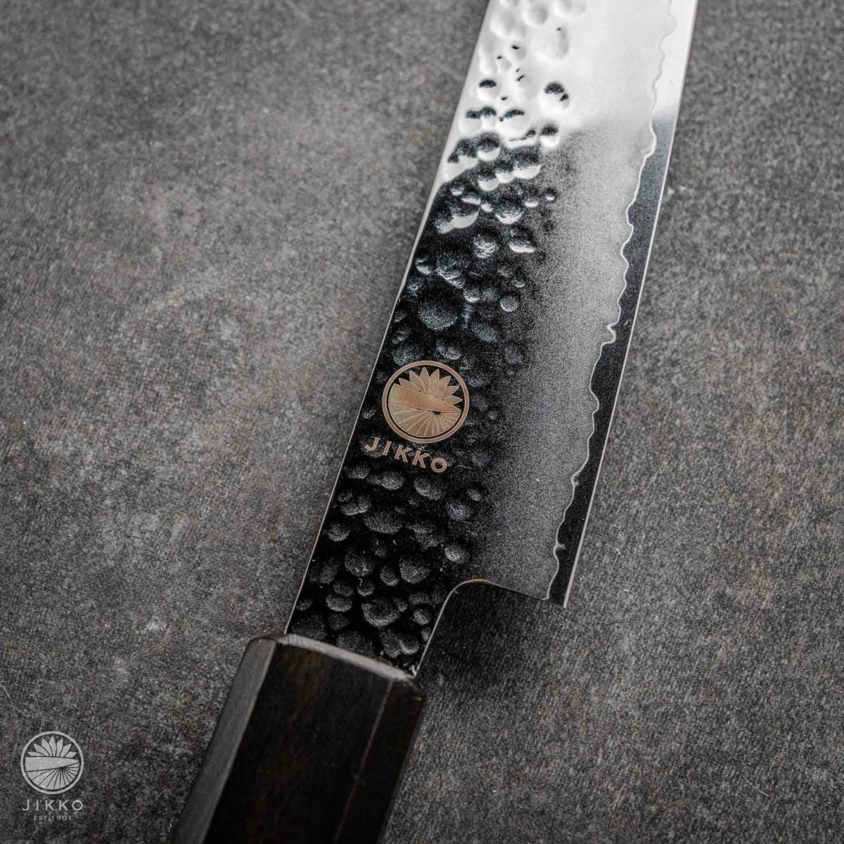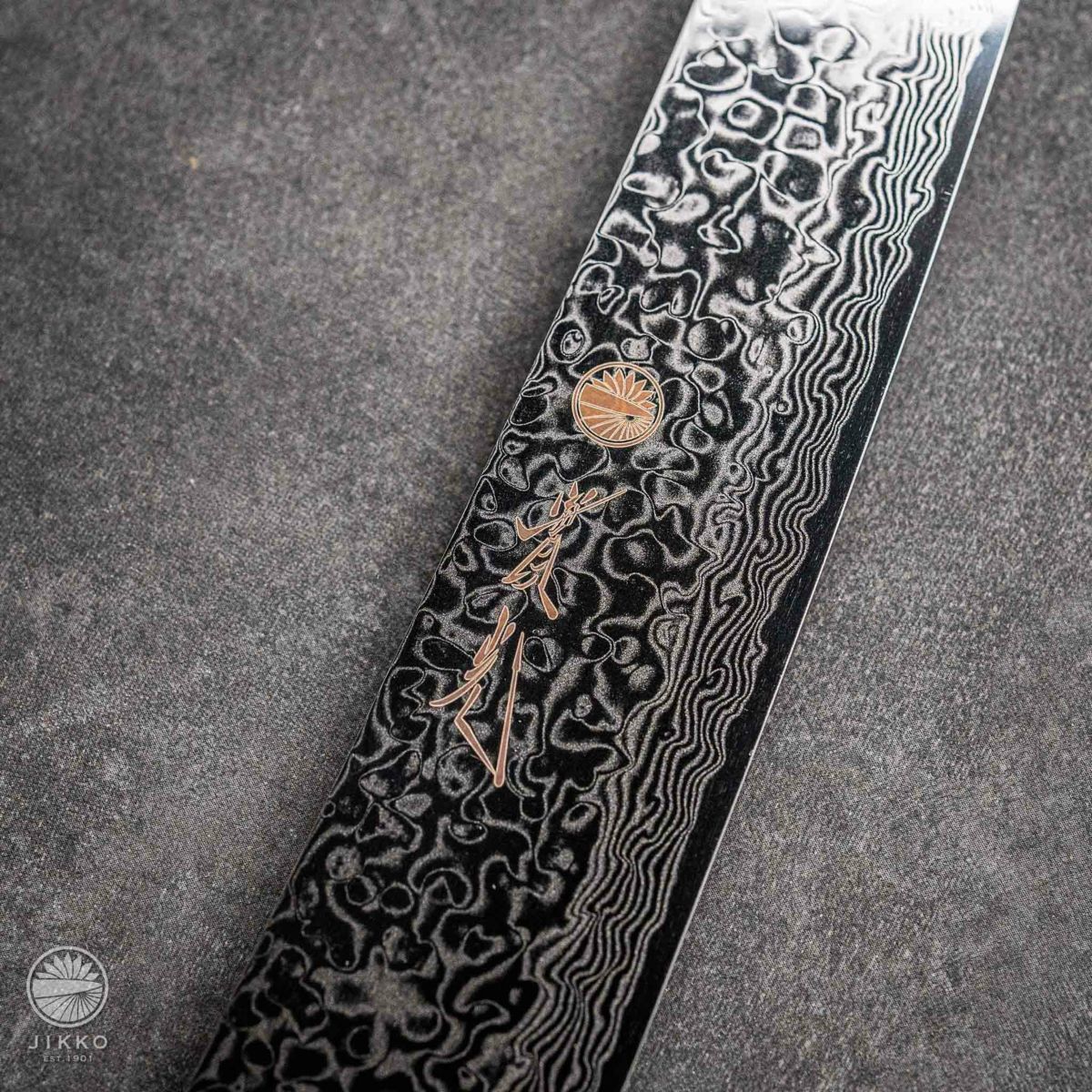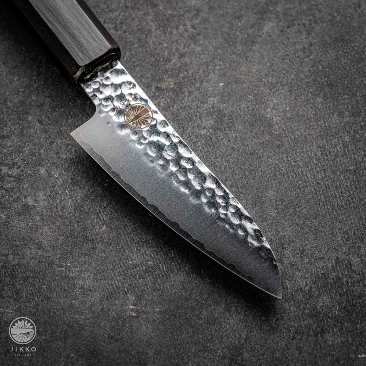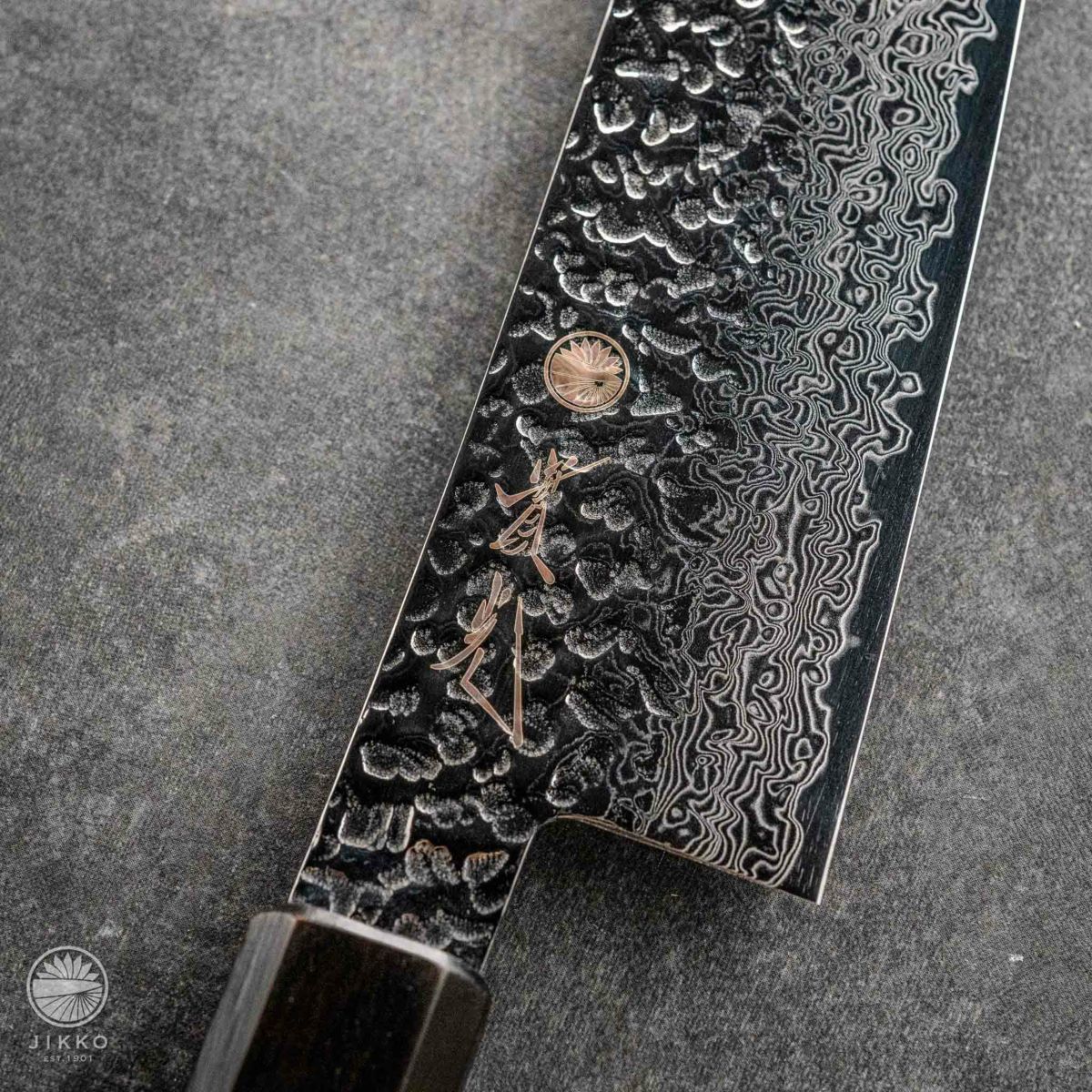 JIKKO型は和包丁をイメージして刃の背部分を反らせたオリジナルの形状をしています。表面が磨いている物と凸凹した2タイプございます。