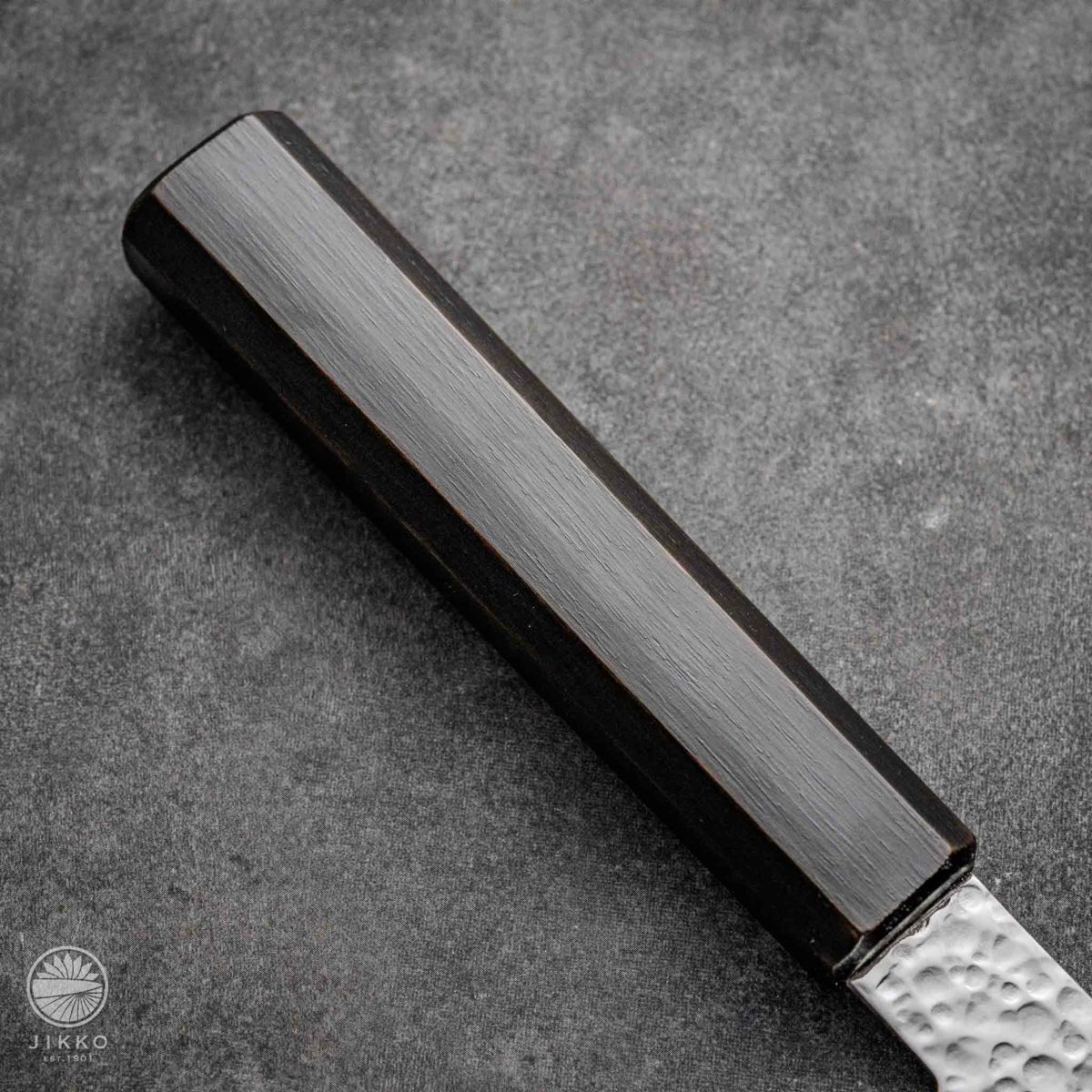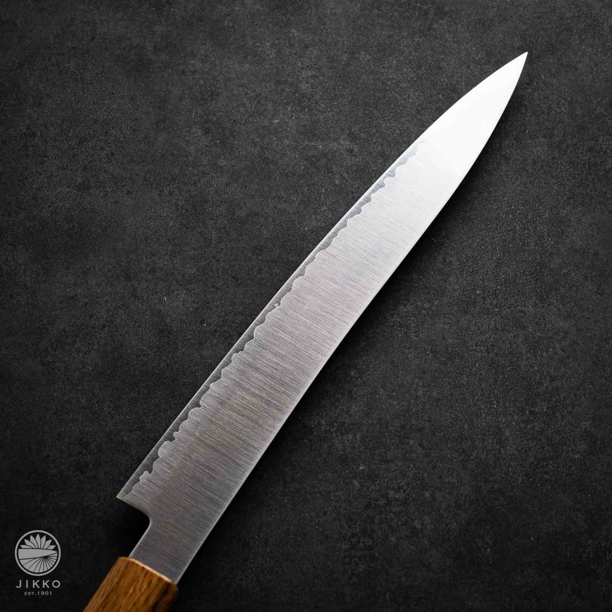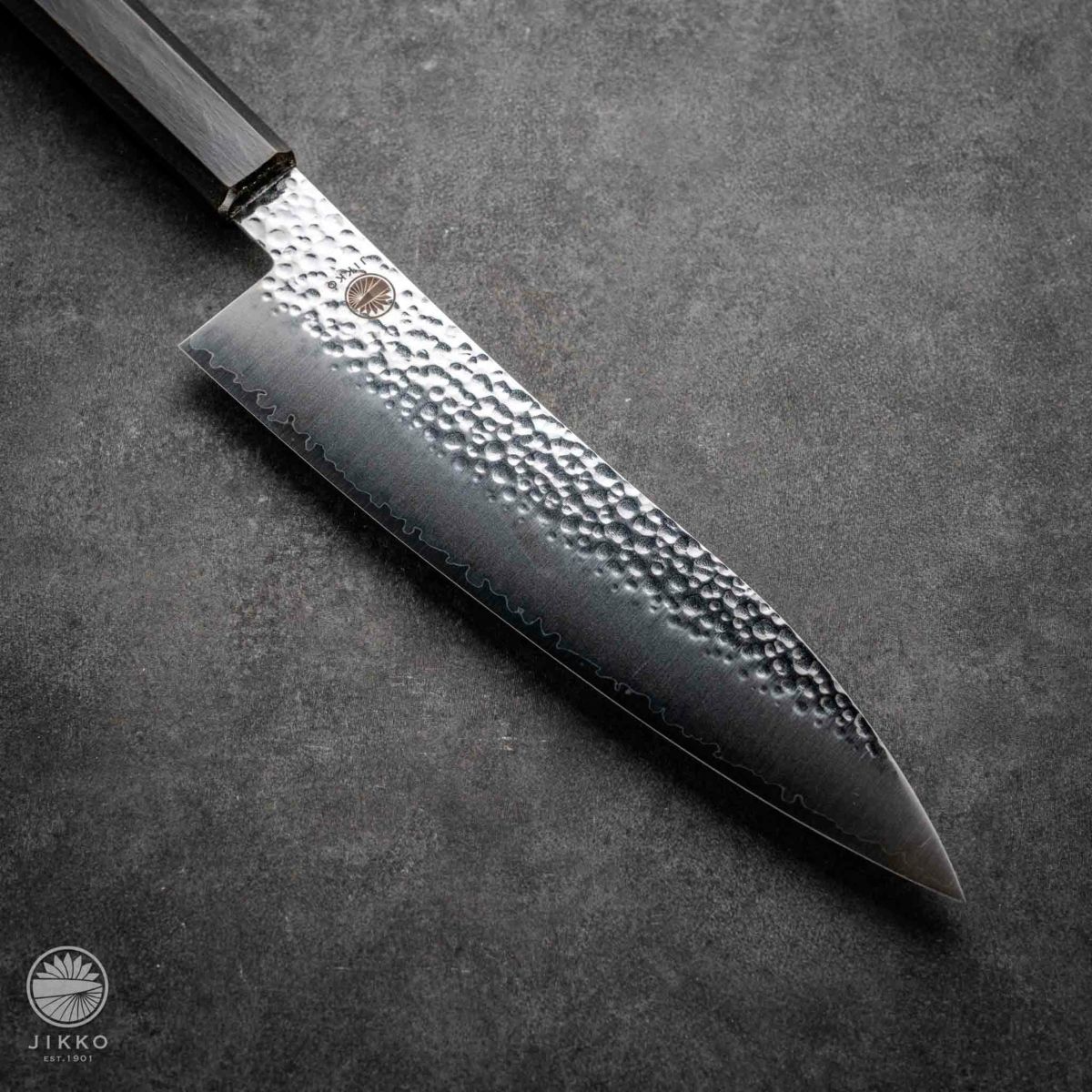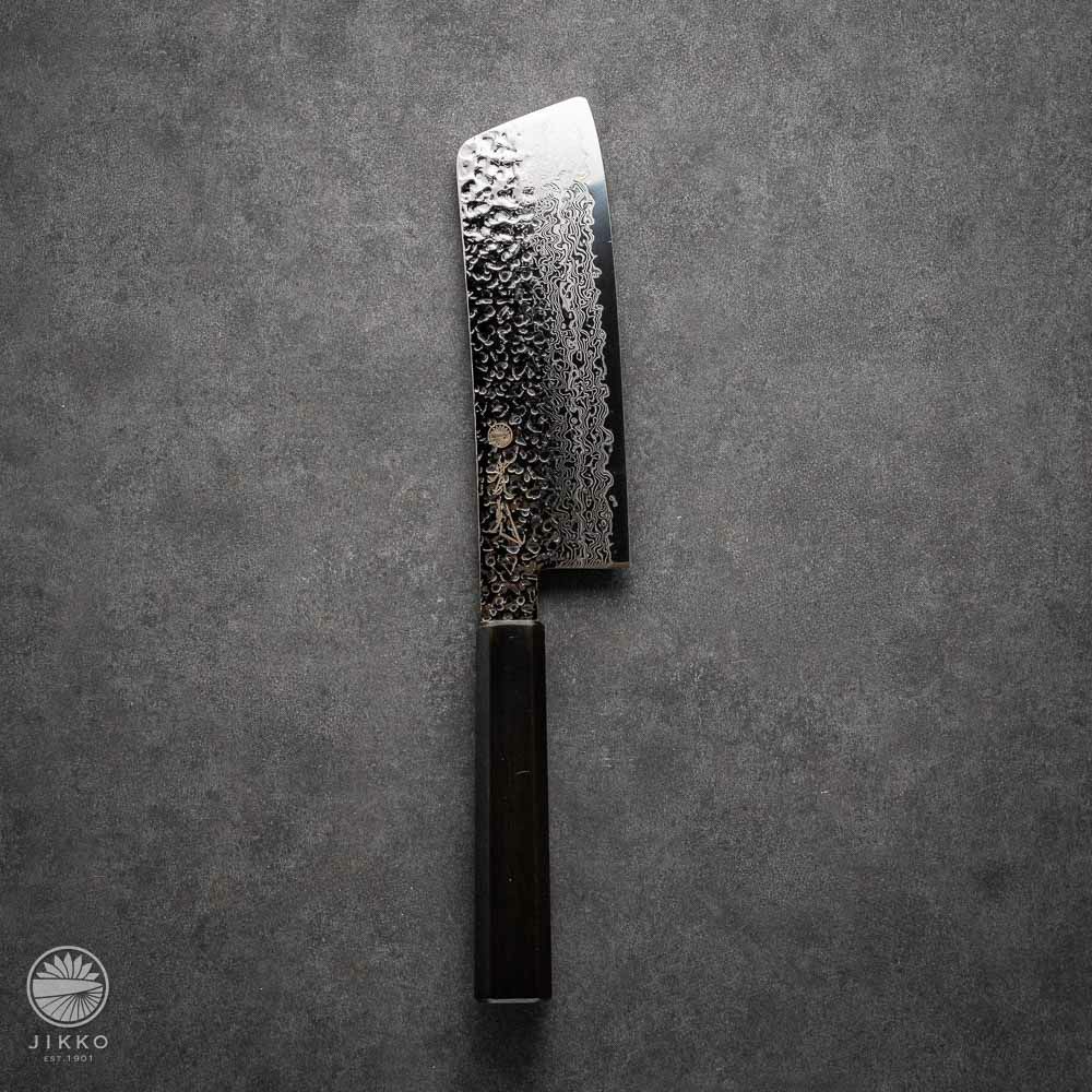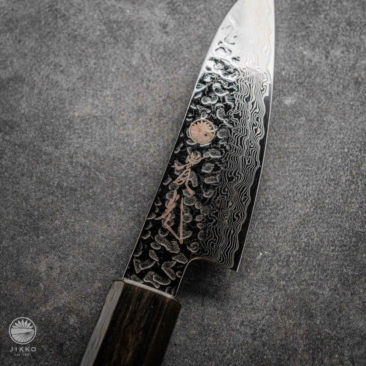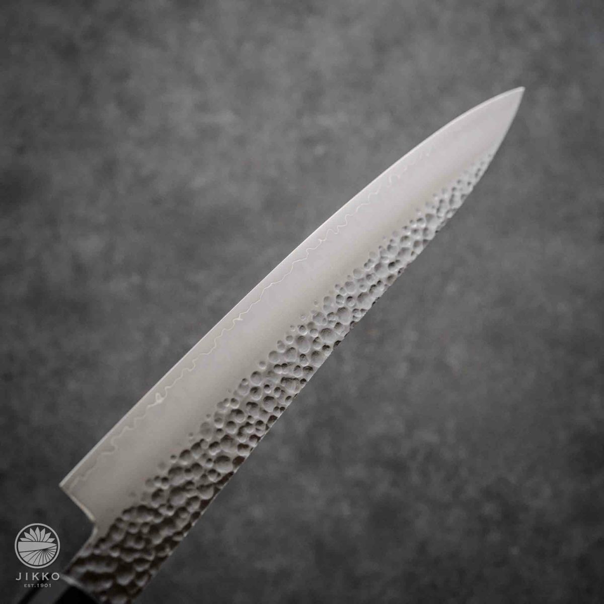 JIKKO型は和包丁をイメージして刃の背部分を反らせたオリジナルの形状をしています。表面が磨いている物と凸凹した2タイプございます。