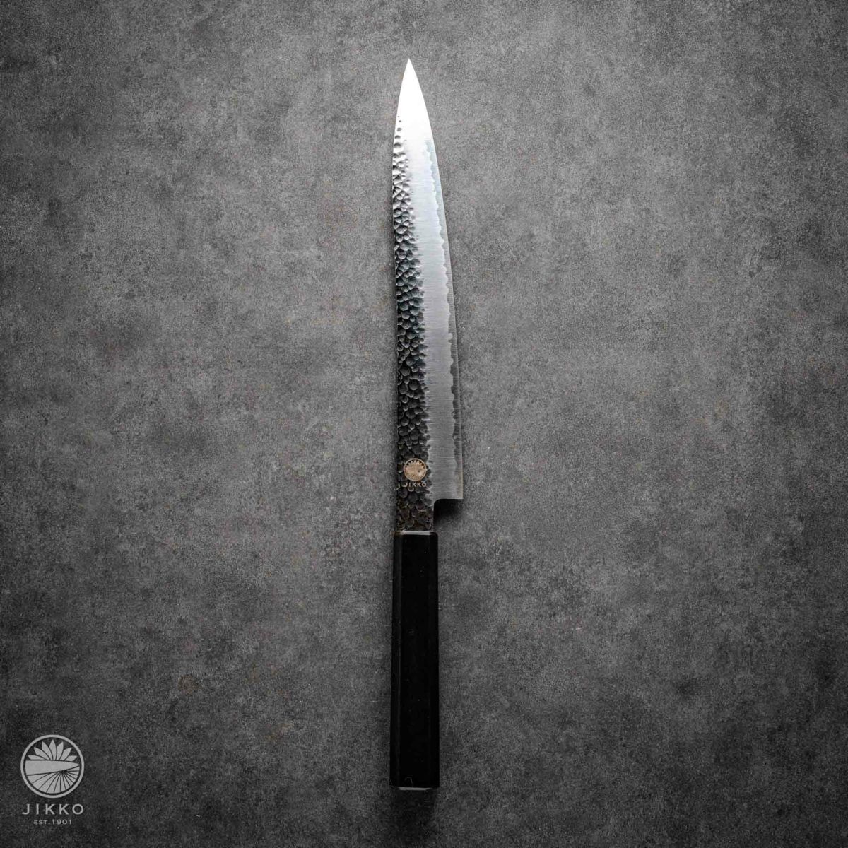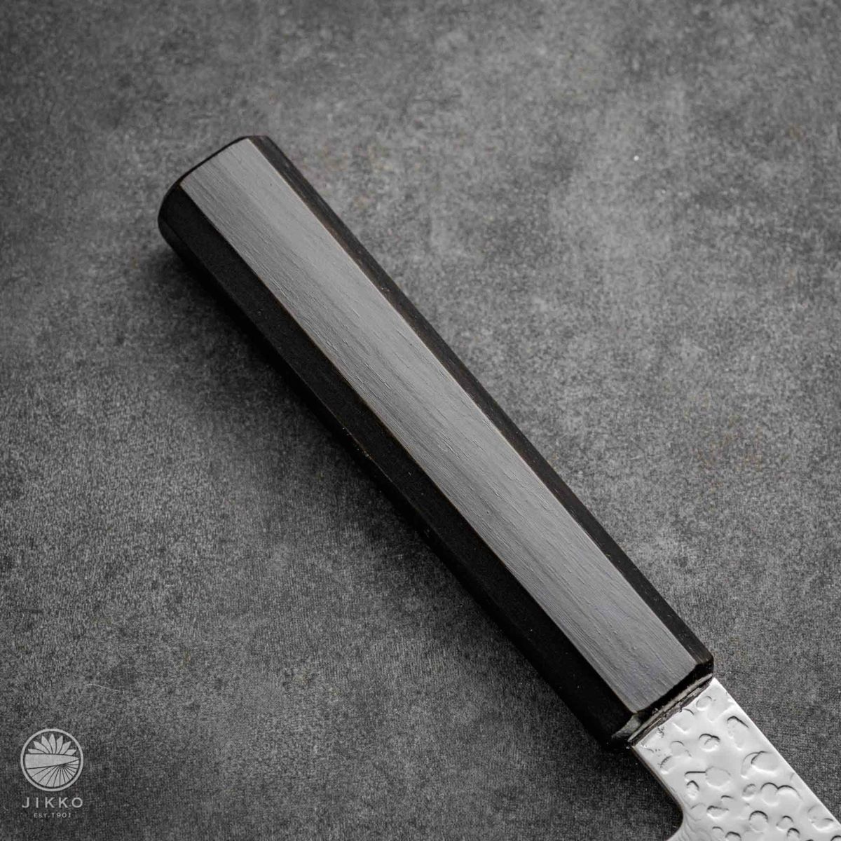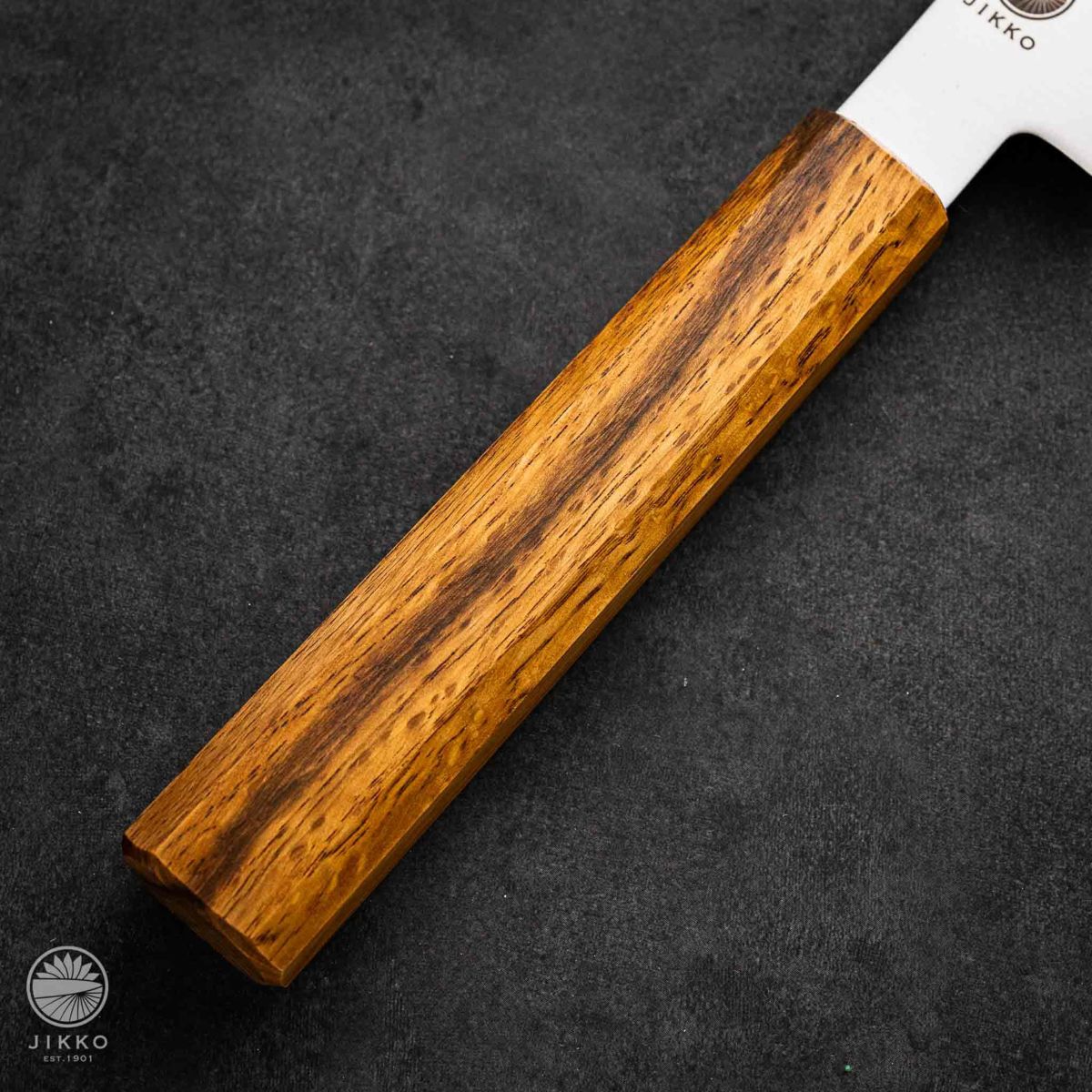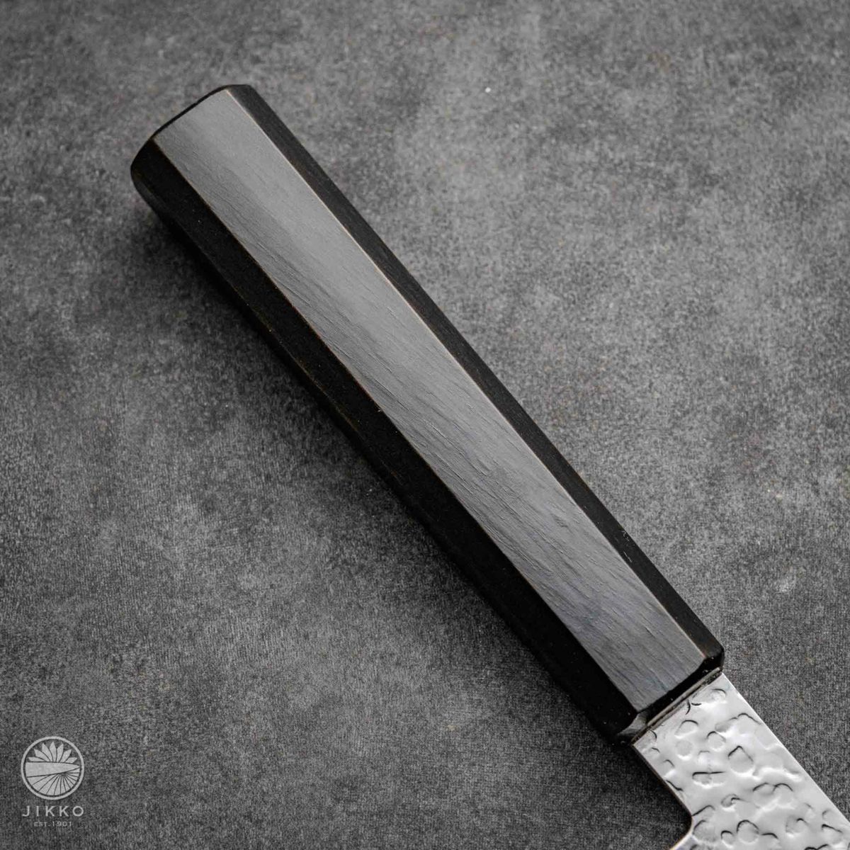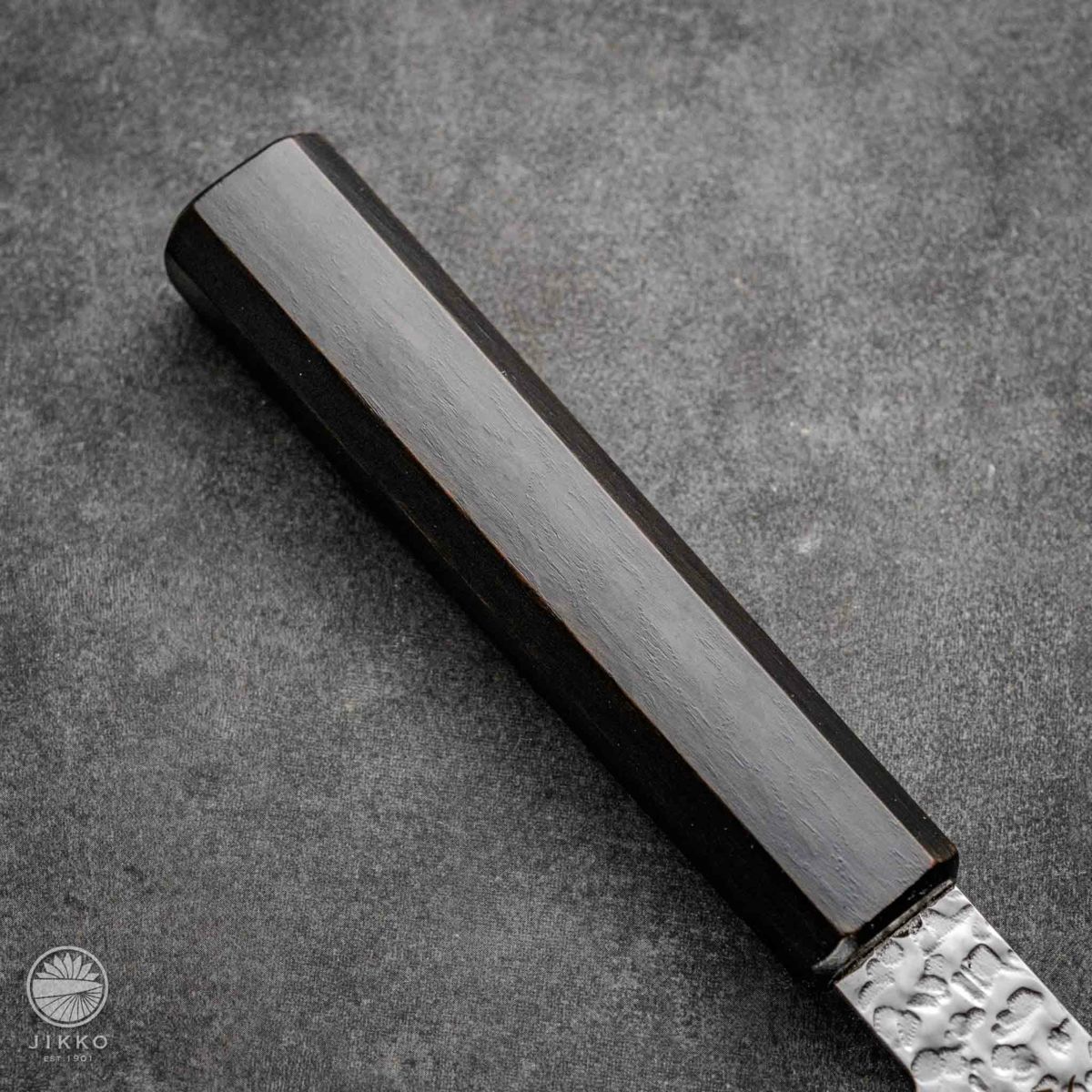 JIKKO型は和包丁をイメージして刃の背部分を反らせたオリジナルの形状をしています。表面が磨いている物と凸凹した2タイプございます。