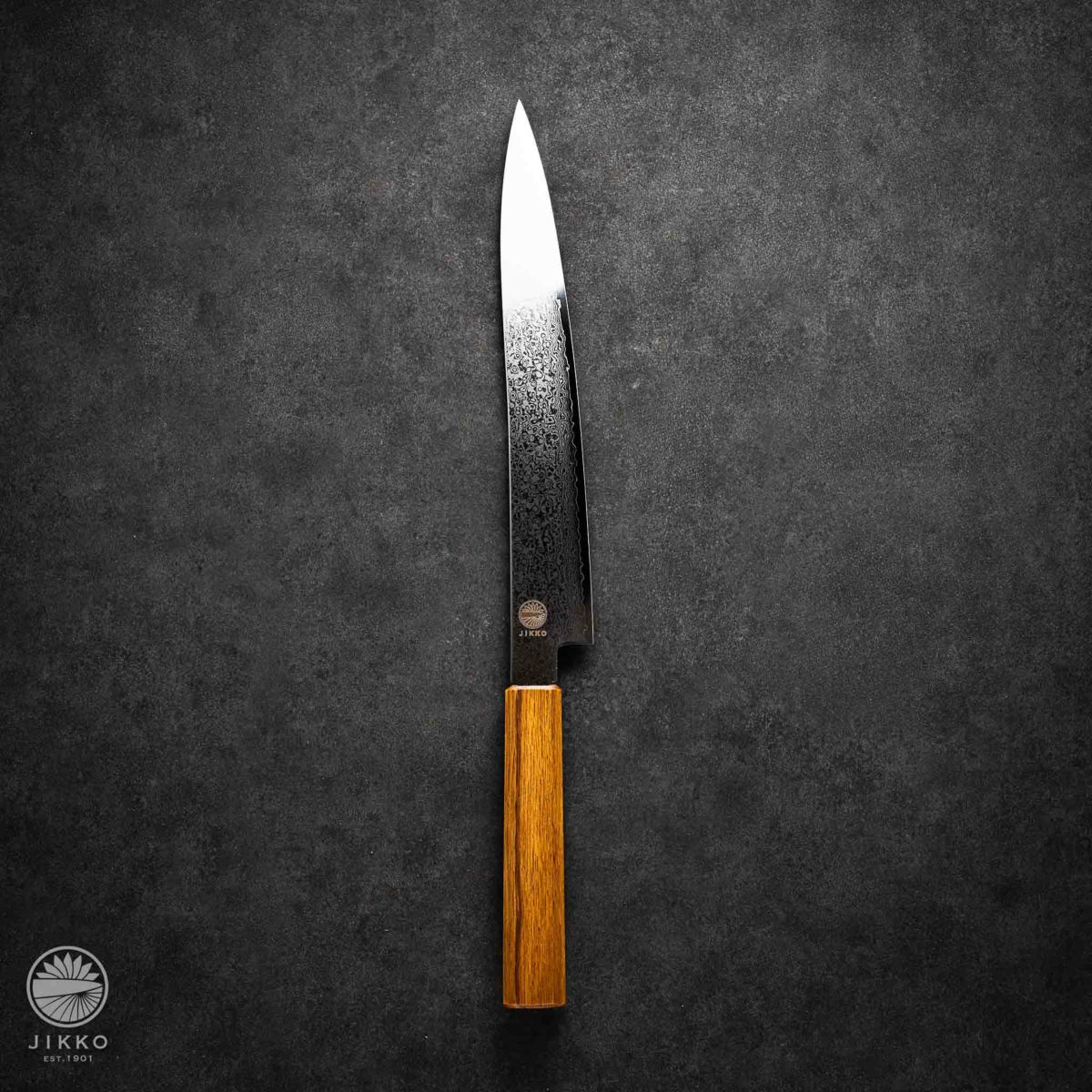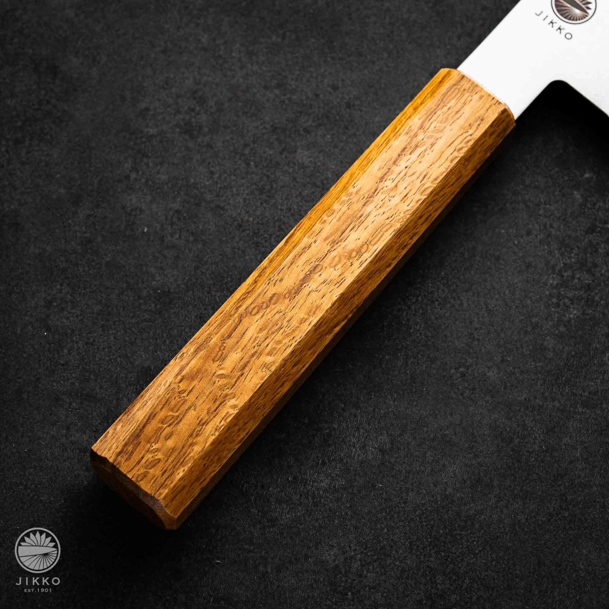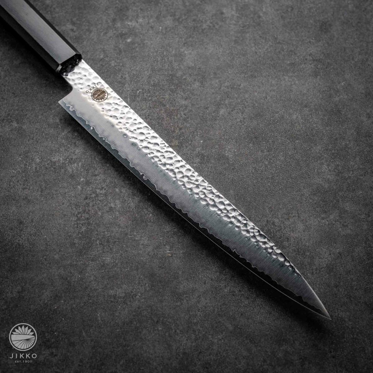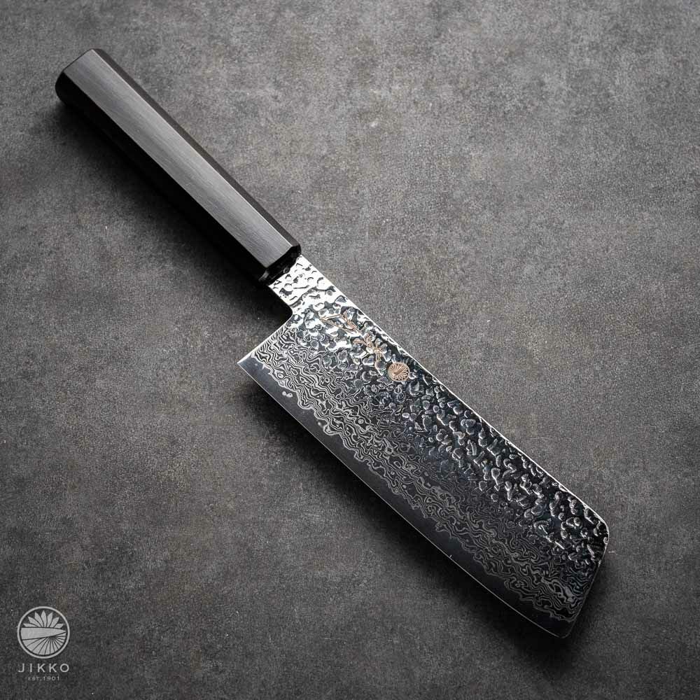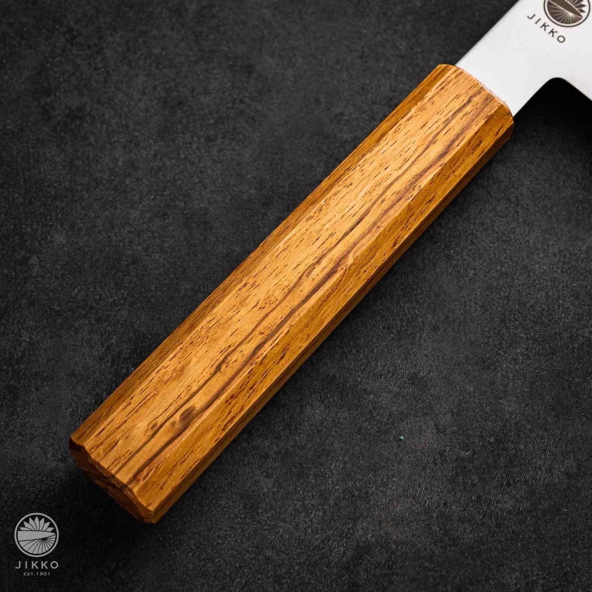 JIKKO型は和包丁をイメージして刃の背部分を反らせたオリジナルの形状をしています。表面が磨いている物と凸凹した2タイプございます。