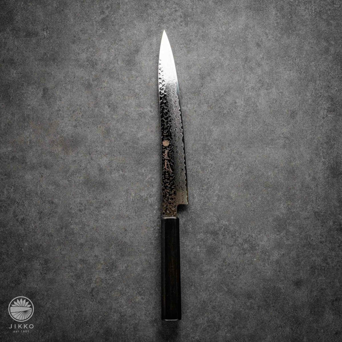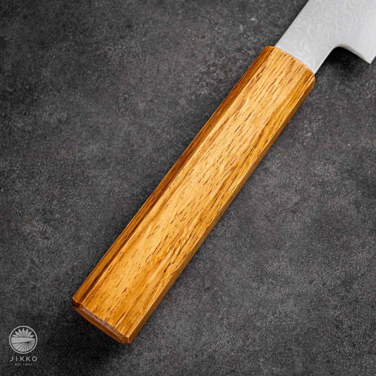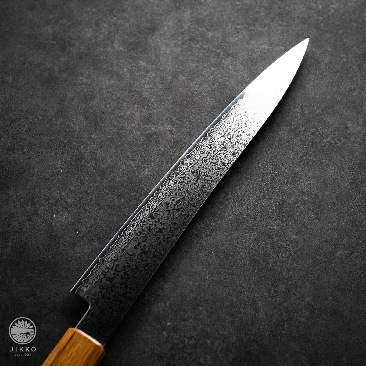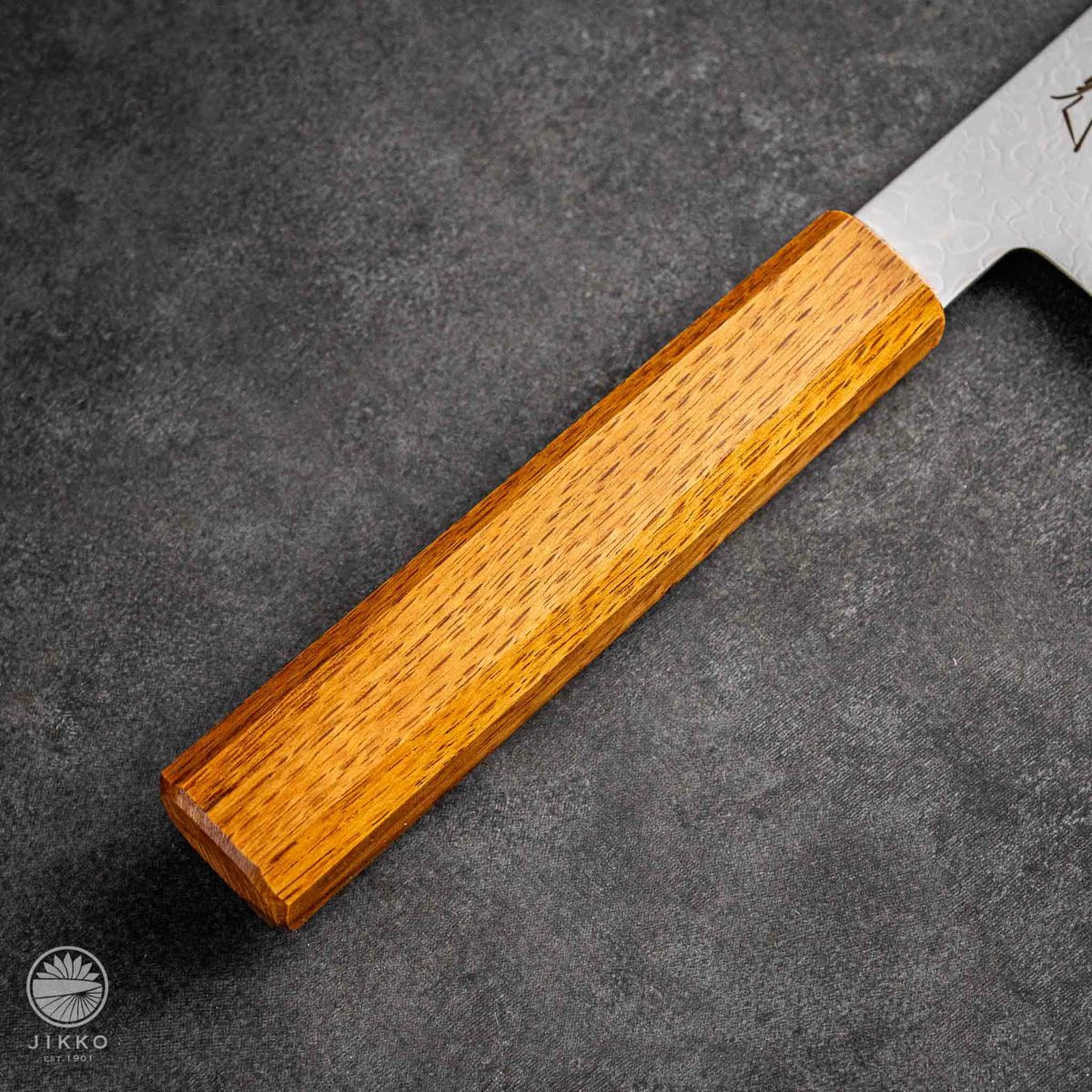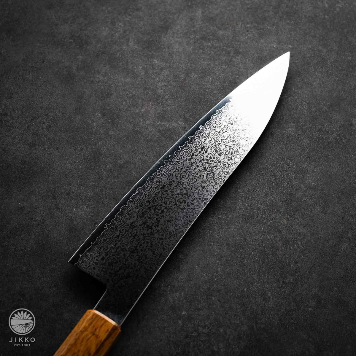 JIKKO型は和包丁をイメージして刃の背部分を反らせたオリジナルの形状をしています。表面が磨いている物と凸凹した2タイプございます。