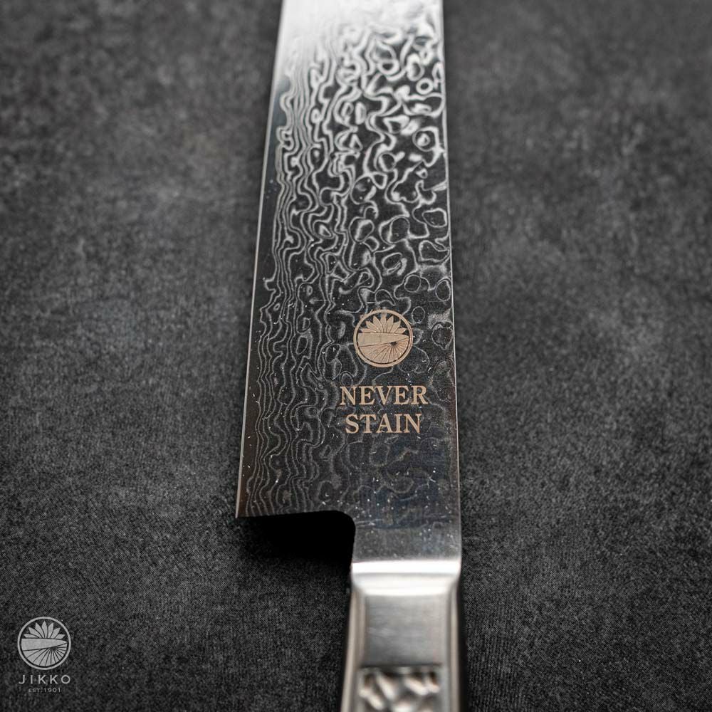 實光刃物より2022年11月に新発売になった「Never Stain(ネバーステイン)」はSG2という非常にサビにくい丈夫な材質を使った包丁です。