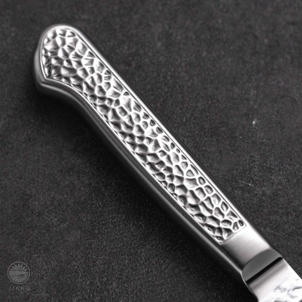 全て金属の包丁のため、重そうと感じる人も多いかと思いますが、実際には洋包丁タイプの包丁よりも少し軽めか同じくらいの重さです。