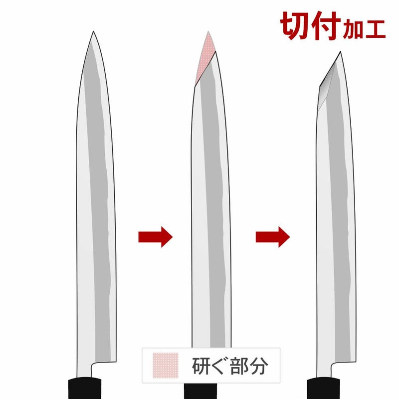 刀身をあなた好みの形に加工したり、表面を鏡面にする事が可能です。また、包丁を最高の切れ味に求める方には本刃付けサービスもございます。包丁をあなたの最高の一本にカスタマイズできます。