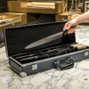 | サイズ | 7本用包丁ケース ●出刃包丁(小):150㎜まで ●出刃包丁(大):240㎜まで ●刺身包丁:360㎜まで ●鎌薄刃包丁:240㎜まで ●牛刀:330㎜まで ●三徳包丁:180㎜まで ●ペティ:150㎜まで ※こちらの商品は包丁ケースのみです。 |