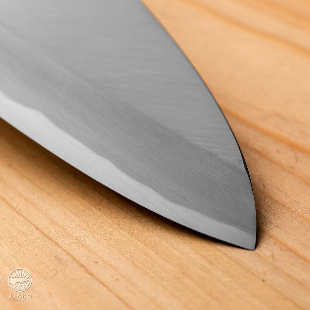 他の画像を見る 【祇園 青】 切付出刃 青紙2号 当店価格 ¥ 64,570 税込 +詳しく見る 白を基調としたデザインになります。清潔感のあるイメージです。切れ味と持続性に優れている青紙2号を使用しています。 詳細を見る お気に入りに登録する