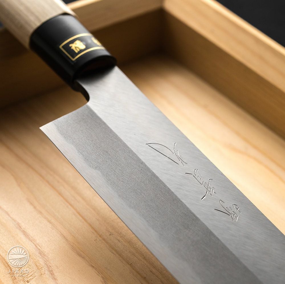 他の画像を見る 【本焼青二】鎌薄刃包丁 青紙2号 本焼 鏡面 当店価格 ¥ 161,040 税込 +詳しく見る 料理人のあこがれの本焼包丁を青紙2号で製造しています。切れ味の持続性は實光の中でもTOPクラスに良いです。 詳細を見る お気に入りに登録する
