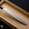 切付けしてた牛刀が歪な形になってしまった為購入しました。 牛刀と同じ24センチを買いました。柳刃としてはちょっと短いんですが牛刀の長さで慣れていたので気にならなかったです。 重さは軽くて扱いやすくてとても切れ味が良く 中トロのスジも難なく切ることが出来て仕事が早く終わりました。 とても良いと思います。