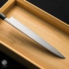 素人が持つのに丁度良い柳刃はないかとずっと探して今した所ここに辿り着きました、 27センチの刃渡りの物を買いましたが、届いて持った時のズッシリとした重みには少し戸惑いましたが、 いざ、自分が釣って来た魚を捌いて刺身を切る時に、スッと身に刃が入った時は驚きと言うか感動すら感じました、一太刀で薄いきれいな刺身が切れました、 届いたままの刃でこれだけ切れれば十分です、