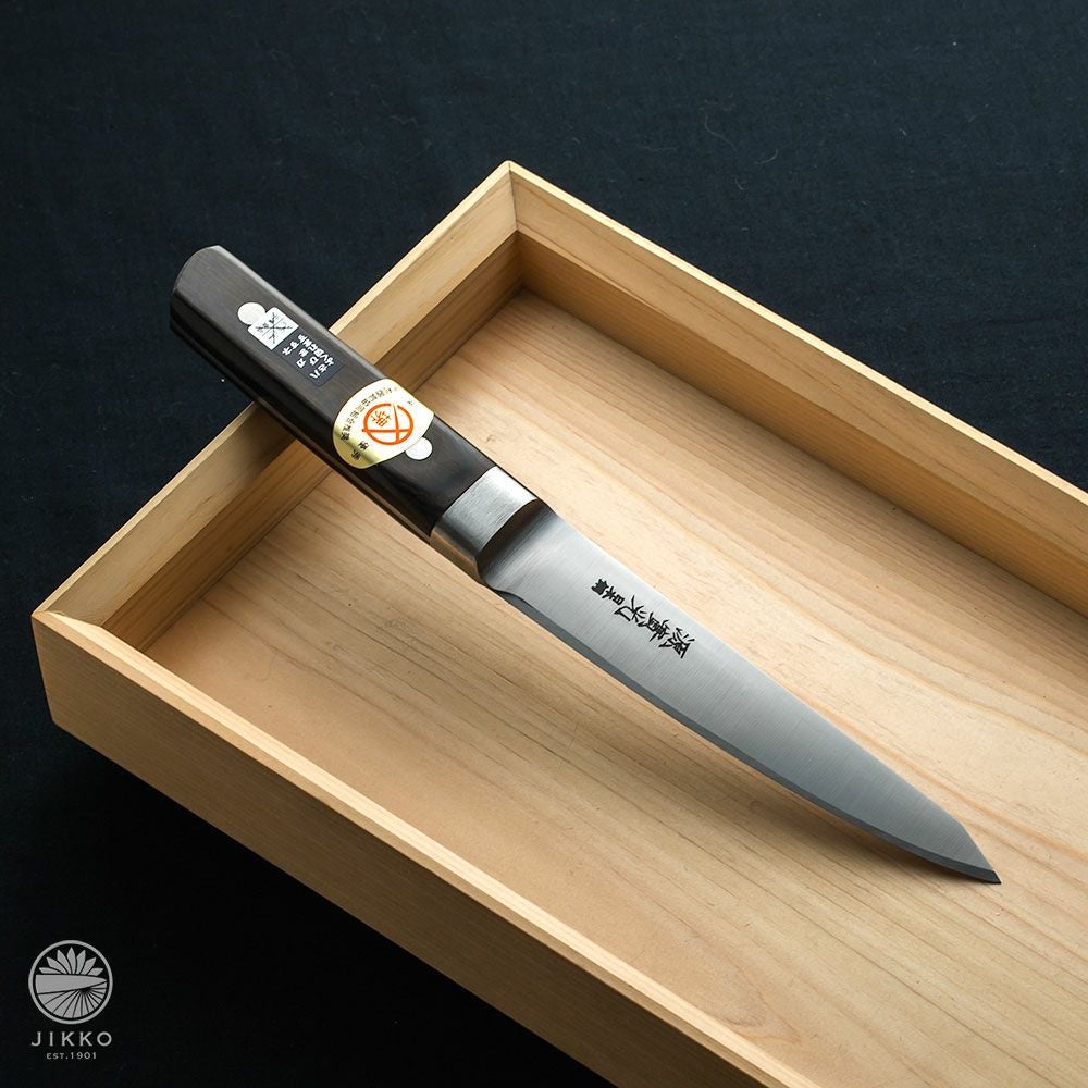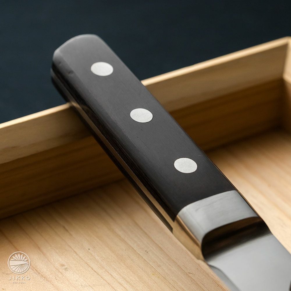 骨から肉を切り剥がす包丁でアゴのない丸型(西型)タイプ。牛刀などの包丁よりも厚みがあり刃こぼれしにくい作りになっています。