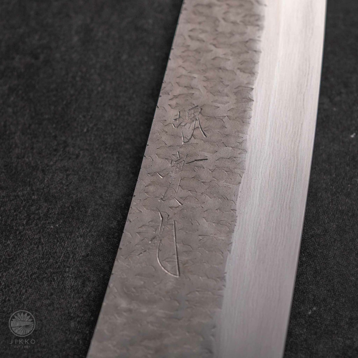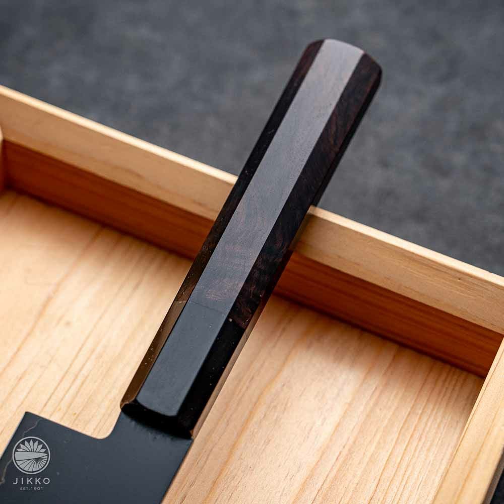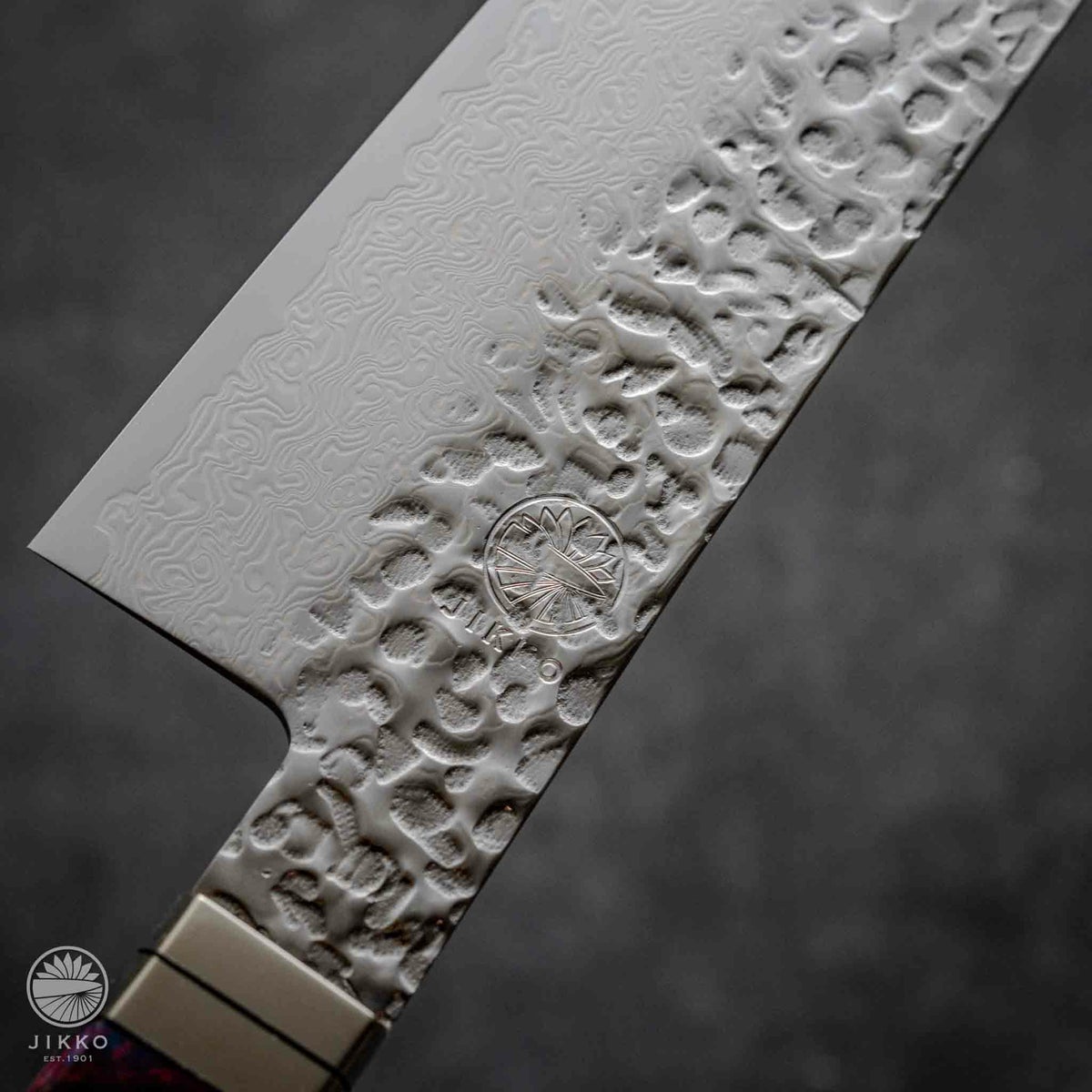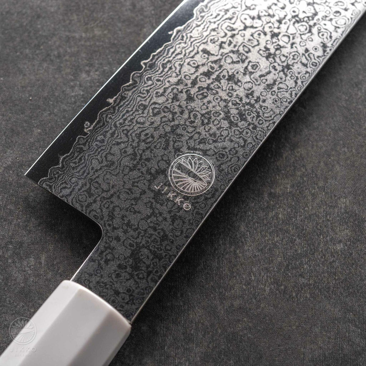 實光では、家庭用でも切れ味が良い為、鋼をお勧めしていますが、ハガネは扱いに手間が掛かるので、切れ味が良く扱いやすいハイブリット鋼材を使った三徳包丁をお勧めしています。