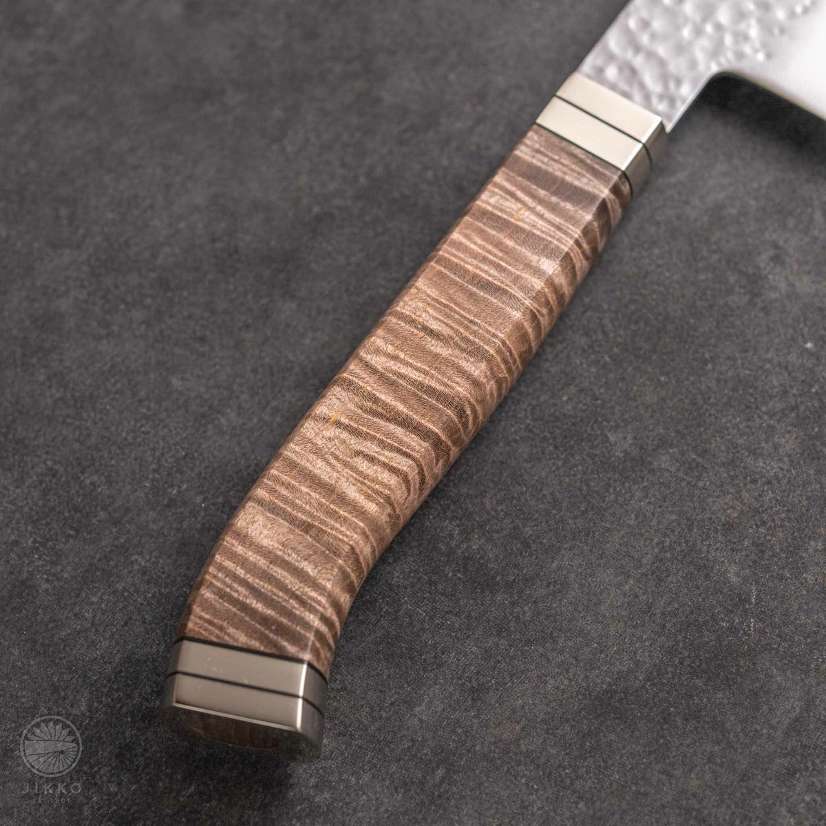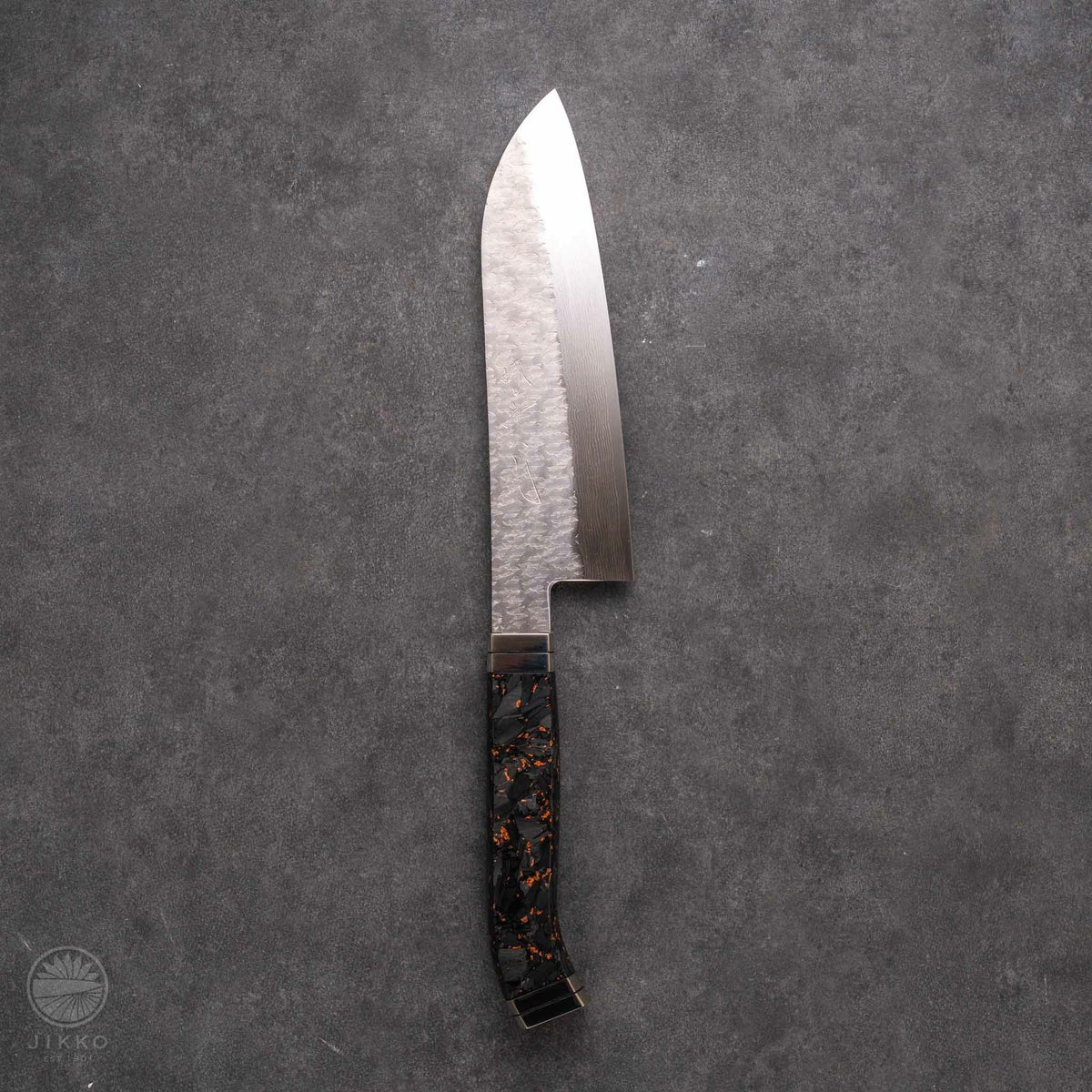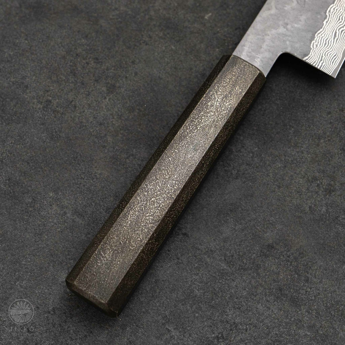 實光では、家庭用でも切れ味が良い為、鋼をお勧めしていますが、ハガネは扱いに手間が掛かるので、切れ味が良く扱いやすいハイブリット鋼材を使った三徳包丁をお勧めしています。