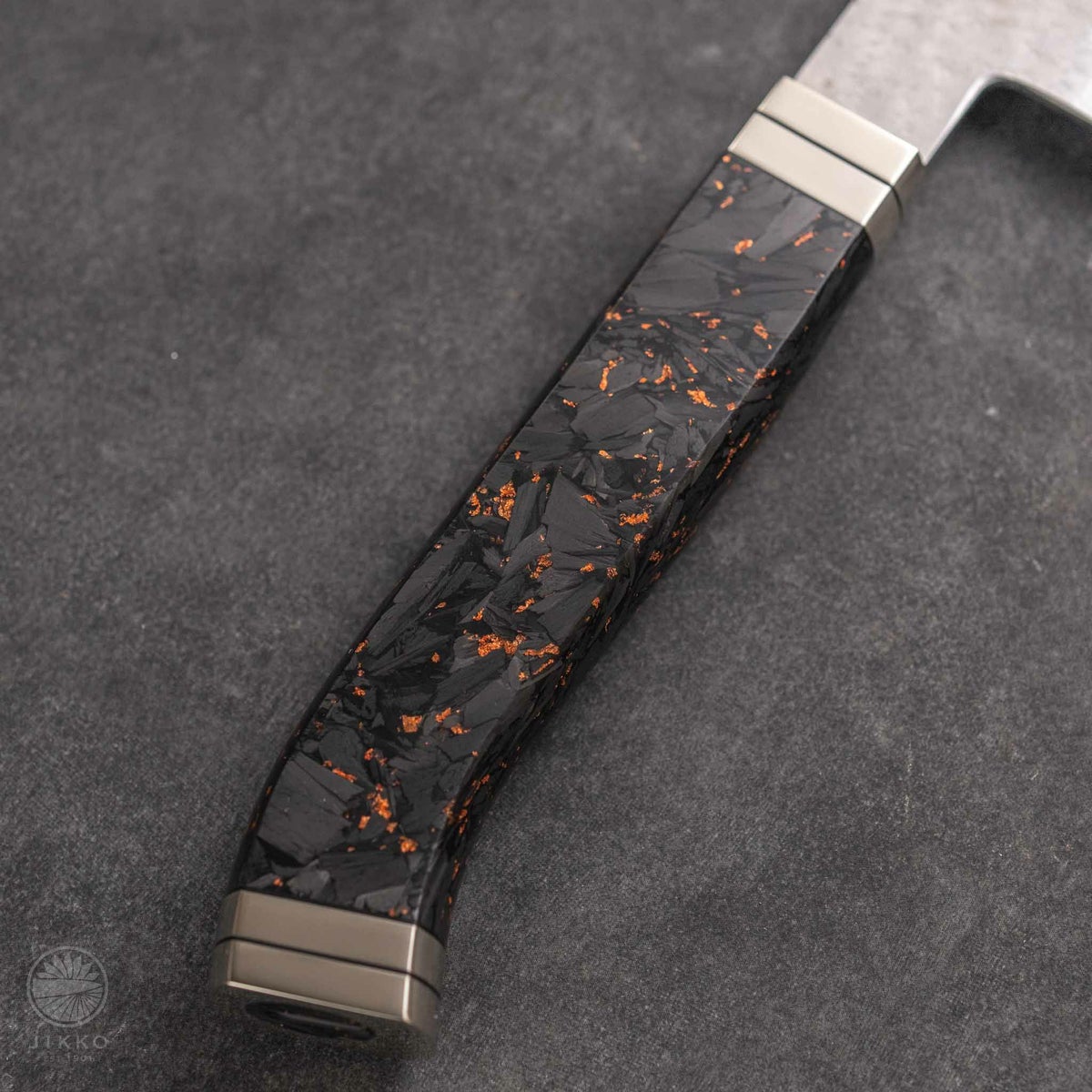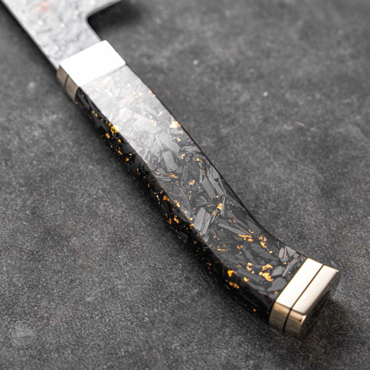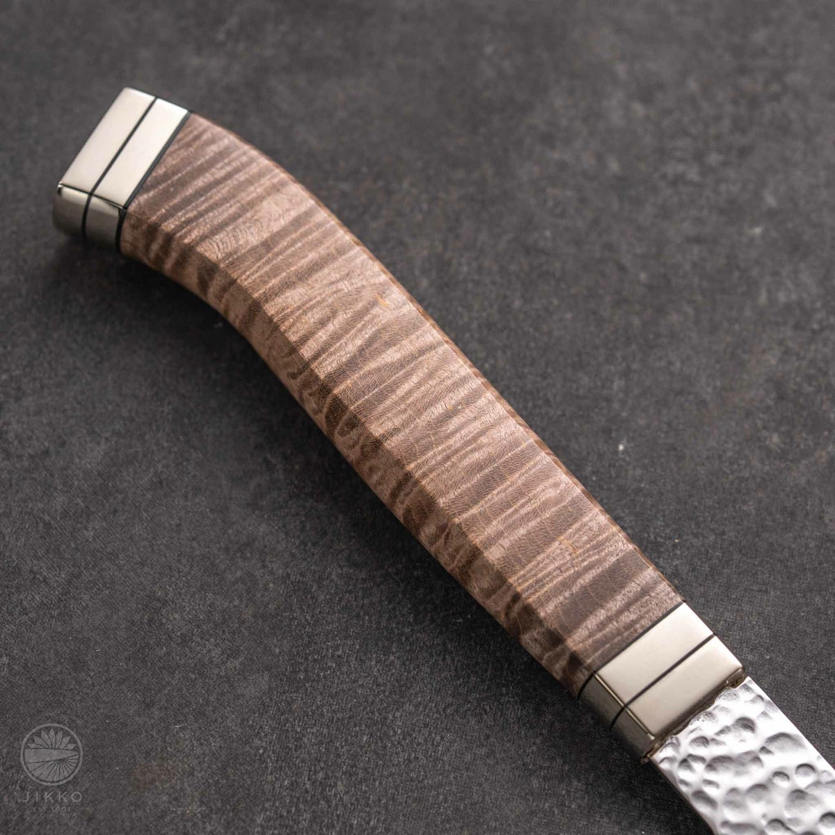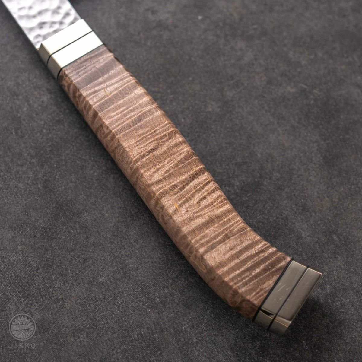 實光では、家庭用でも切れ味が良い為、鋼をお勧めしていますが、ハガネは扱いに手間が掛かるので、切れ味が良く扱いやすいハイブリット鋼材を使った三徳包丁をお勧めしています。