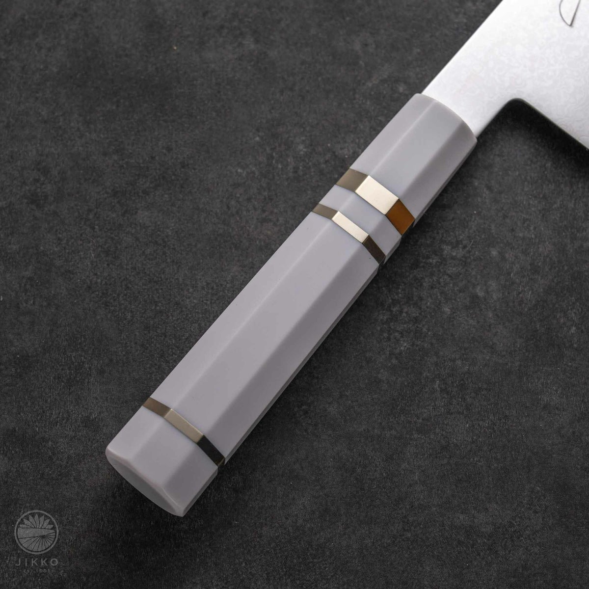 三徳包丁は日本のキッチンで欠かせない万能タイプの包丁です。肉・魚・野菜を1本で切ることができることから「三徳」と名付けられています。サイズは165~180mm、先端が丸く、日本で良く料理される野菜などが切りやすい形状の刃になっているので、料理初心者の方でも使いやすい包丁です。