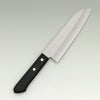 | 用途 | 三徳包丁(さんとくほうちょう)の三徳の意味は「三つの美徳」や「三つの用途」を意味していて、肉、魚、野菜など幅広い材料に対してさまざまな切り方が出来ることをあらわしています。家庭用として非常に一般的な包丁であり、最初の包丁として選ぶのに向いている。 |