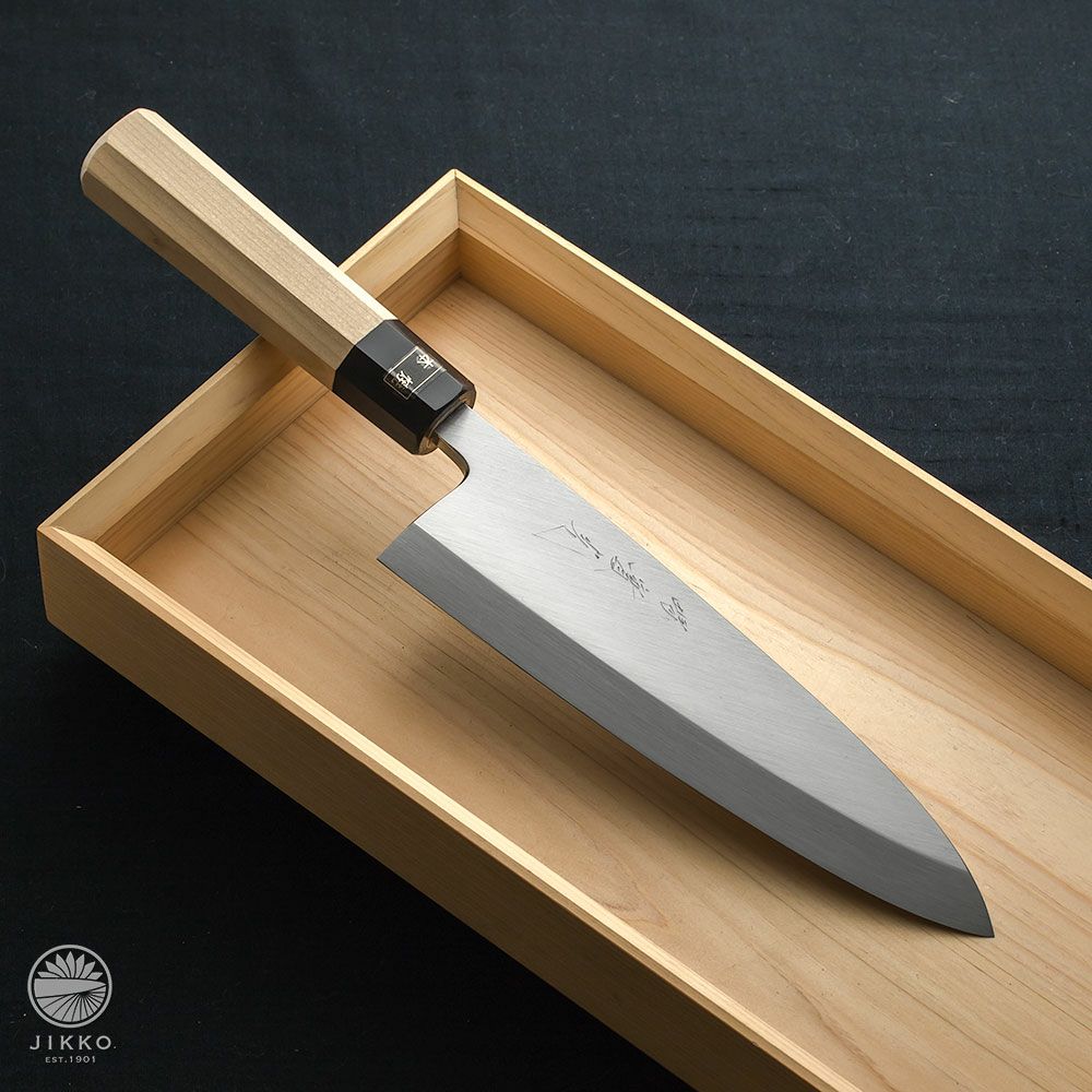 | 用途 | 出刃包丁は魚を三枚におろしたり、さばくための包丁です。魚の骨を切るために刃の背が厚くなっています。魚の骨や鳥の骨などを切る時はかならず出刃包丁をご使用ください。 |