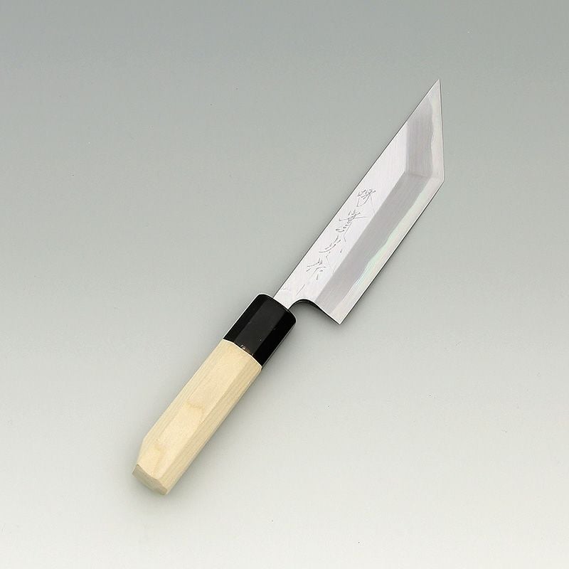 | 用途 | どじょうは江戸裂包丁の短いタイプになります。切っ先が切り出しの形状になっていて、柄尻が斜めに切られています。背開き専用。腹開き専用。 |