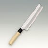 | 用途 | 骨切包丁はハモの骨切り専用の特殊包丁で、小骨の多い魚の骨を切ります。その為、鱧切り(はもきり)とも言われています。包丁の重さを利用して、1cmに5~6回、身の手前から奥へリズムよく葉を入れて行きます。力を入れすぎると皮まで切れてしまいます。皮一枚で残す技術が必要になります。 |