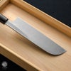 | 用途 | 鎌薄刃包丁は関西型(西型)の薄刃包丁になります。主に野菜を切るのに適している包丁です。鎌薄刃包丁は先端の峰の部分が丸くなっているのが特徴です。薄刃包丁との違いは、切っ先が尖っているため、切っ先で野菜の飾り切り等の細工がやりやすくできています。 |