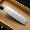 | 用途 | 菜切包丁(なきりほうちょう)は野菜専用包丁です。ですが、現在は三徳包丁と同じように使用しています。形状が三徳包丁とは違い長方形の形をしています。和包丁タイプの薄刃包丁は片刃ですが菜切り包丁は両刃です。 |