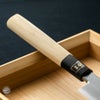 上作シリーズから裏押しを一万番の砥石で仕上げているので、研ぎなおしも簡単にできます。切れ味はもちろん、修理がし易いのは良い包丁の条件になります。