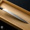 | 用途 | 刺身包丁は生の魚介類を刺身などにブロック状の切り身などを薄く引くのに適しています。角が立った美味しい刺身を引くには、刃渡りが必要になるため刺身包丁は基本的に細長い形状をしています。 |