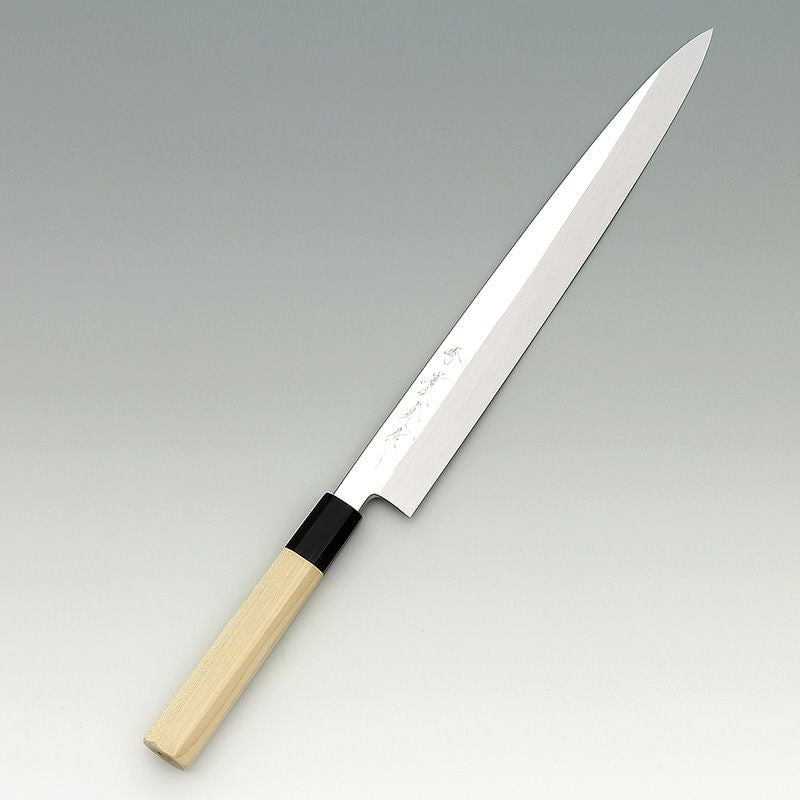 | 用途 | 刺身包丁は生の魚介類を刺身などにブロック状の切り身などを薄く引くのに適しています。角が立った美味しい刺身を引くには、刃渡りが必要になるため刺身包丁は基本的に細長い形状をしています。 |