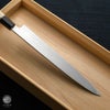 | 用途 | 刺身包丁は生の魚介類を刺身などにブロック状の切り身などを薄く引くのに適しています。角が立った美味しい刺身を引くには、刃渡りが必要になるため刺身包丁は基本的に細長い形状をしています。 |