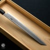 | 用途 | 刺身包丁は生の魚介類を刺身などにブロック状の切り身などを薄く引くのに適しています。角が立った美味しい刺身を引くには、刃渡りが必要になるため刺身包丁は基本的に細長い形状をしています。 |