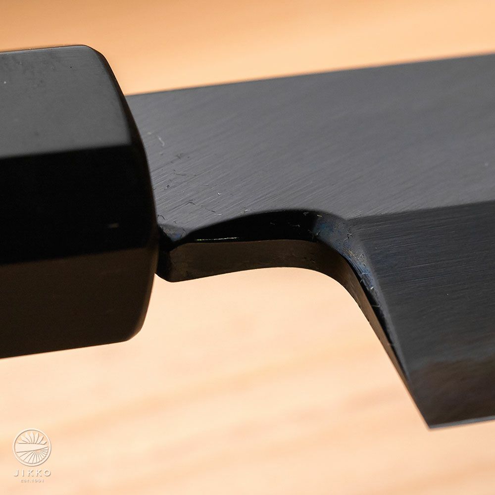 包丁の背の部分を鏡上に仕上げています。包丁を持った時に背に角が無く手触りが良く持ちやすいです。