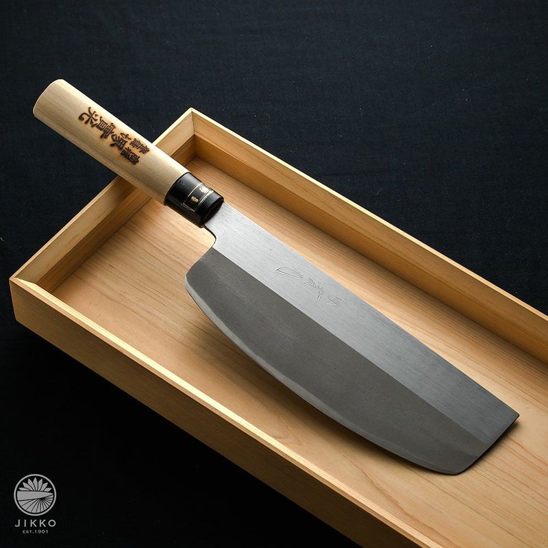 刃身の材質、日本鋼は昔から和包丁に使われています。片刃(鋼)の切れ味を楽しんでください!