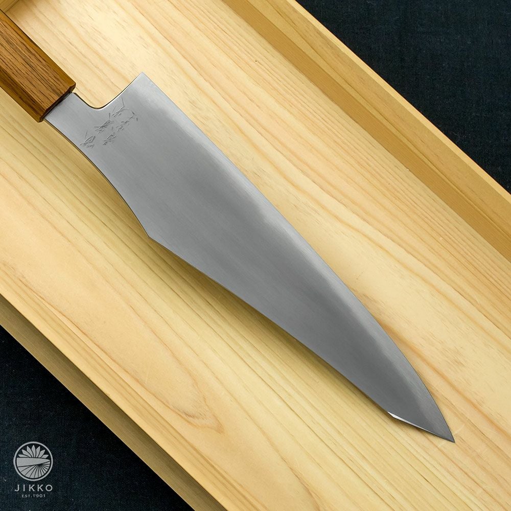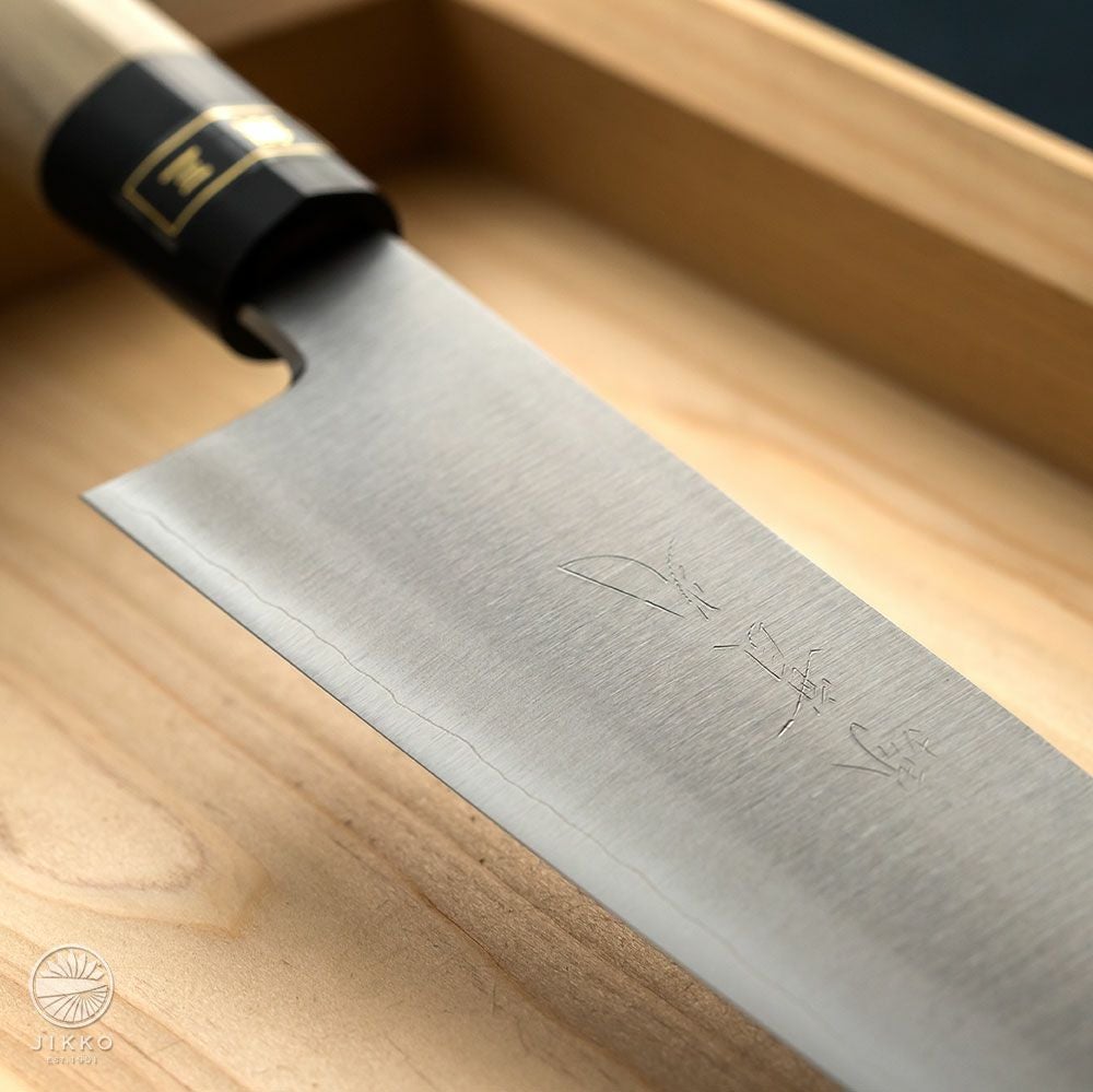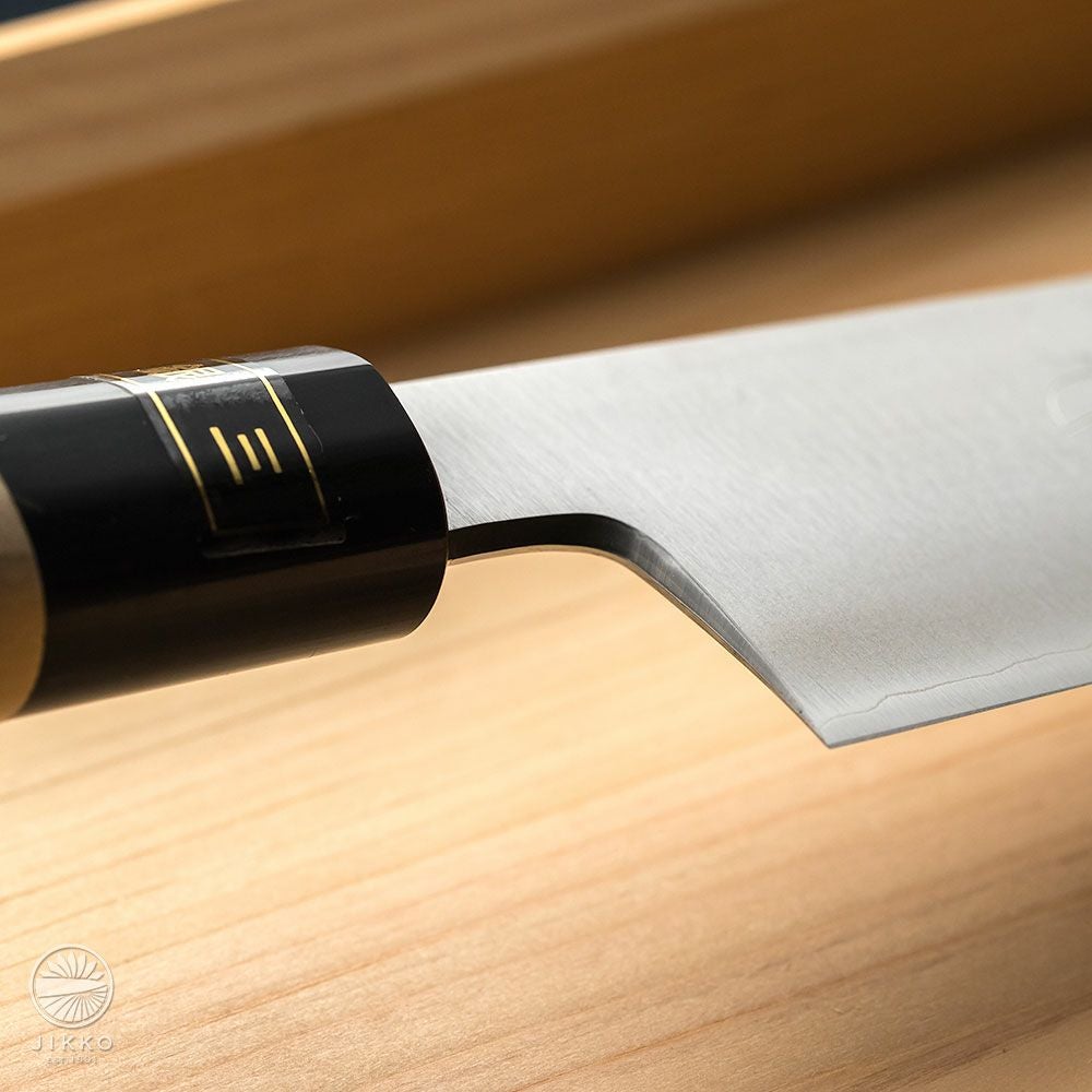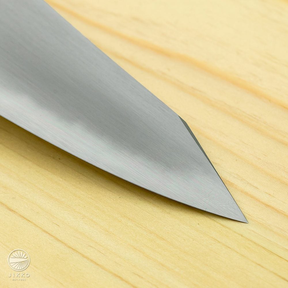 牛刀というと洋包丁のイメージが強いと思いますが、堺の和包丁職人が牛刀を作っています。切れ味はもちろん良いですし、しかも見た目の存在感がすごくいいです!刃先の波紋から表面の仕上げまで手仕事が詰まったシリーズも用意していますので、本格的な牛刀が欲しい方はぜひ一度お試しください。