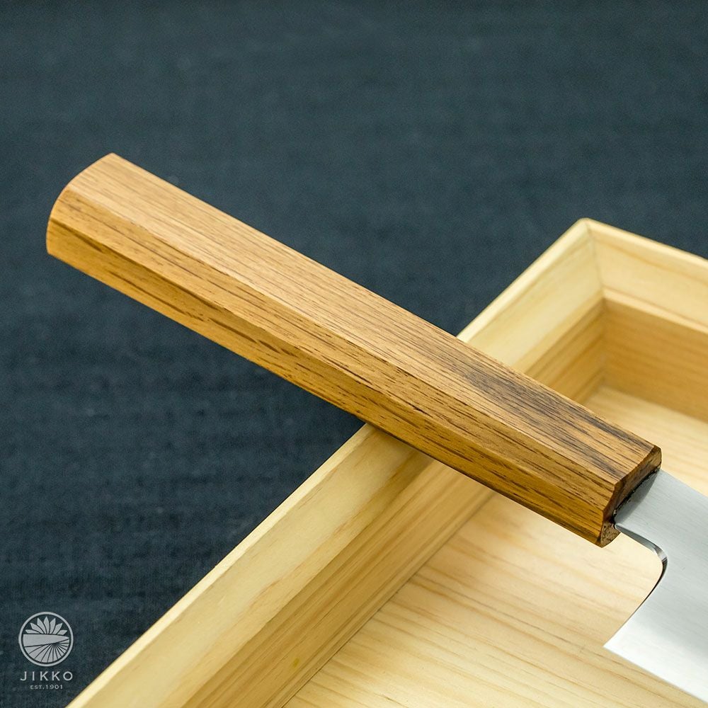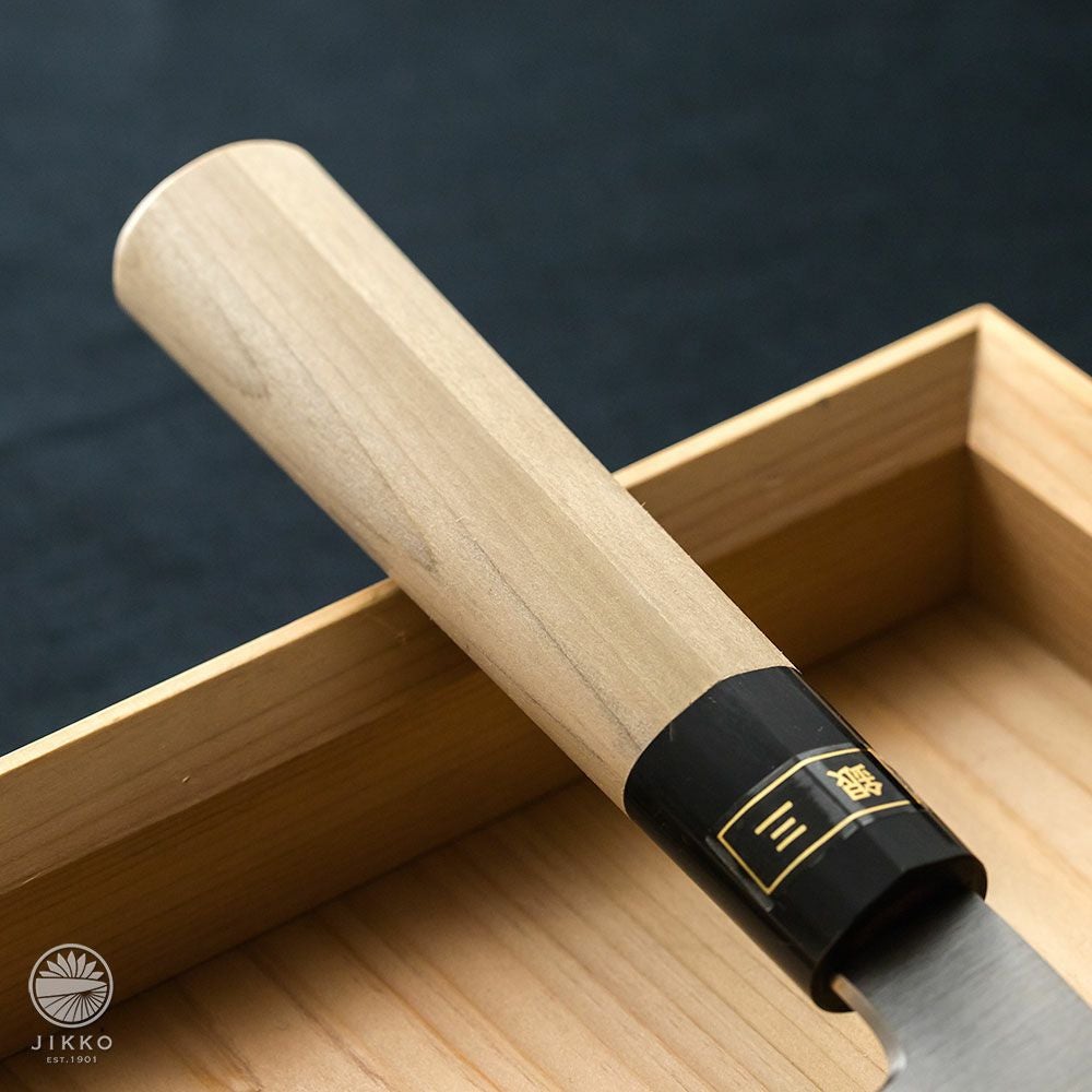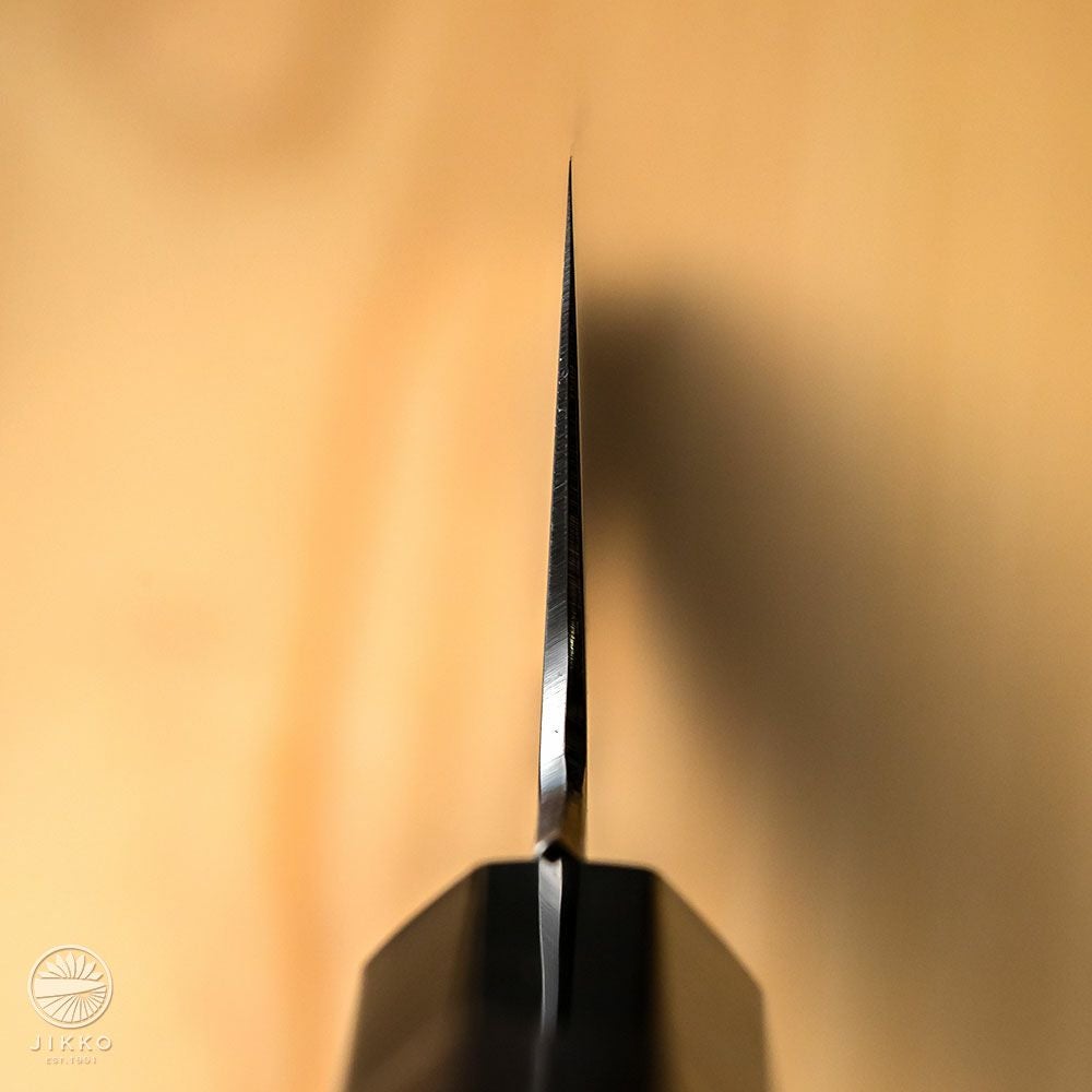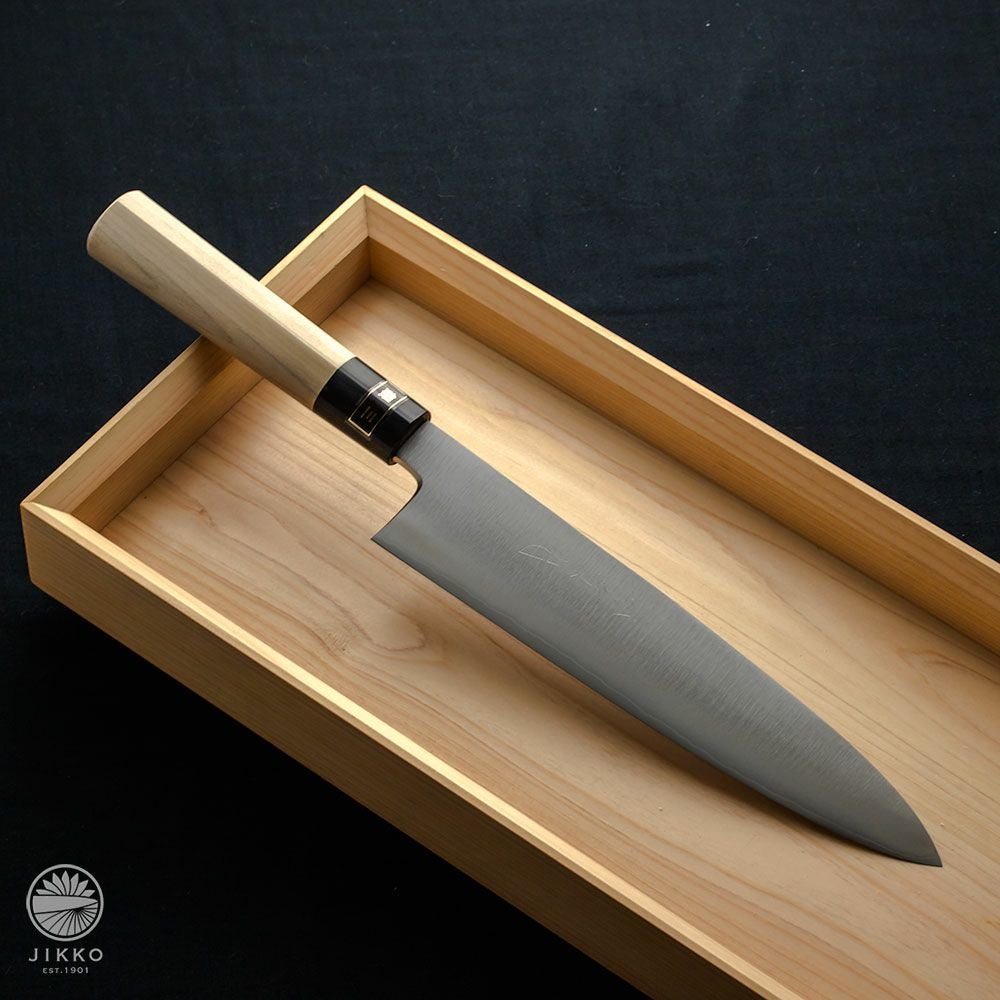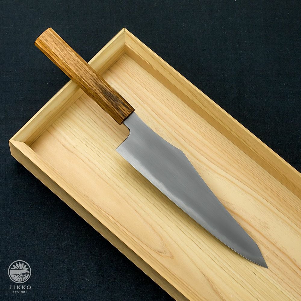 牛刀というと洋包丁のイメージが強いと思いますが、堺の和包丁職人が牛刀を作っています。切れ味はもちろん良いですし、しかも見た目の存在感がすごくいいです!刃先の波紋から表面の仕上げまで手仕事が詰まったシリーズも用意していますので、本格的な牛刀が欲しい方はぜひ一度お試しください。