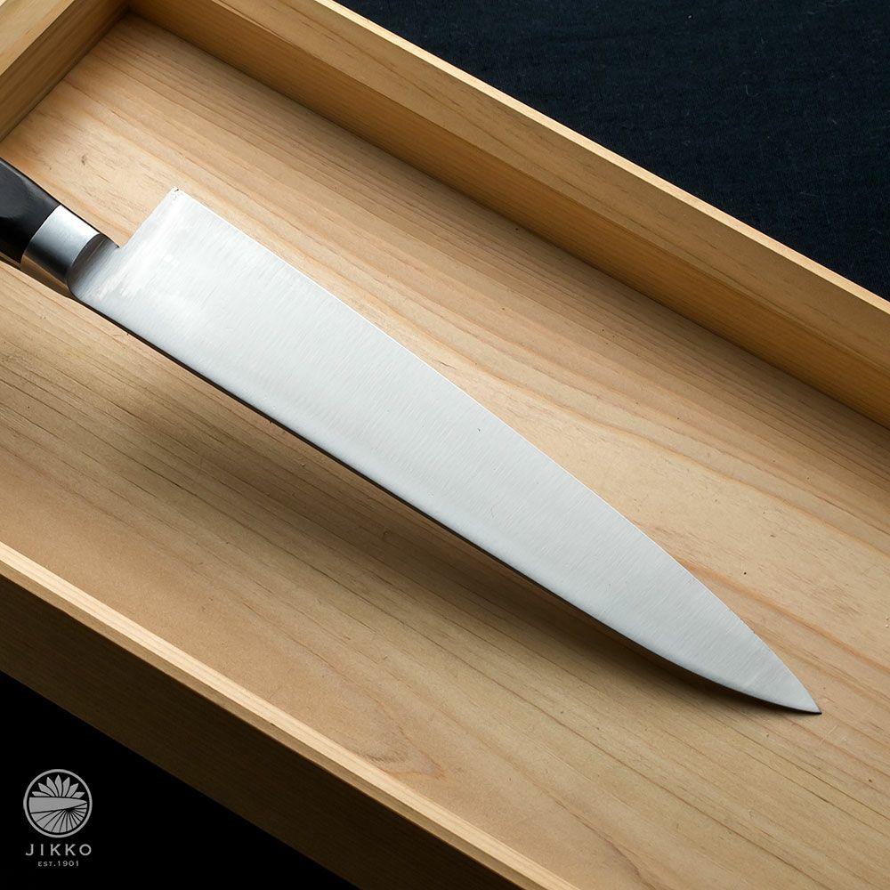 | 用途 | 肉、野菜、魚(骨以外)を牛刀1本で何でも切ることが出来ます。料理人の間で最も使いやすく、必ず一本は持っている包丁です。サイズは刃渡りが180mmから360mmまであり自分に合ったサイズを選ぶことが出来ます。 |