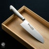 | 用途 | 三徳包丁(さんとくほうちょう)の三徳の意味は「三つの美徳」や「三つの用途」を意味していて、肉、魚、野菜など幅広い材料に対してさまざまな切り方が出来ることをあらわしています。家庭用として非常に一般的な包丁であり、最初の包丁として選ぶのに向いている。 |