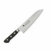 | 用途 | 三徳包丁(さんとくほうちょう)の三徳の意味は「三つの美徳」や「三つの用途」を意味していて、肉、魚、野菜など幅広い材料に対してさまざまな切り方が出来ることをあらわしています。家庭用として非常に一般的な包丁であり、最初の包丁として選ぶのに向いている。 |