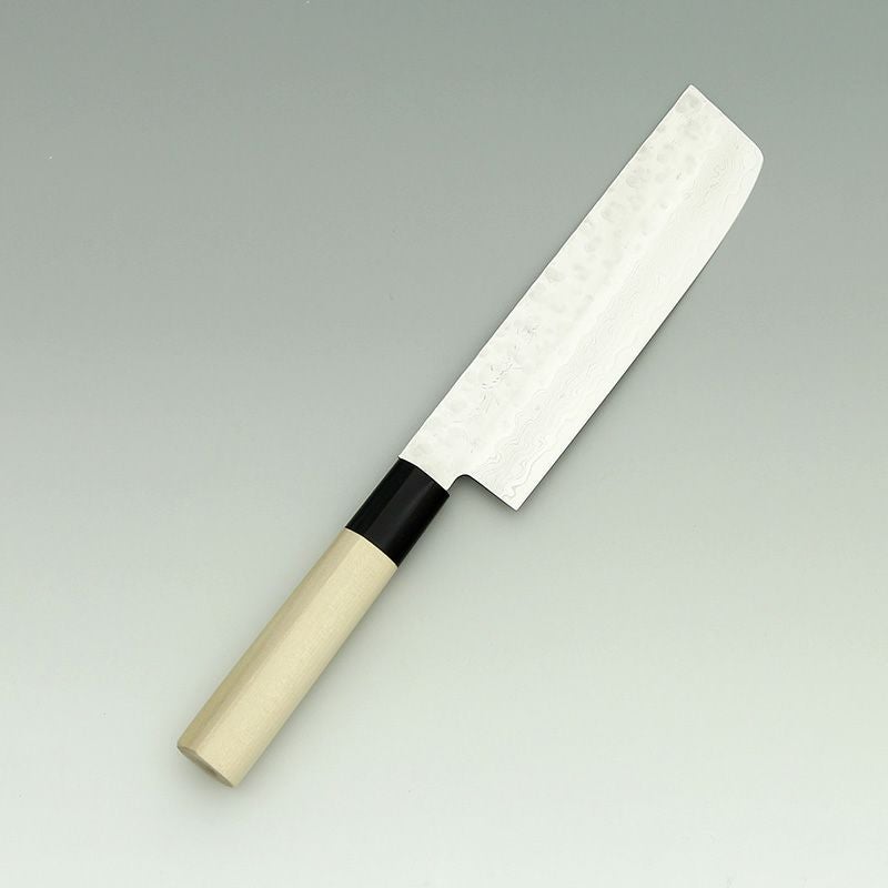 | 用途 | 菜切包丁(なきりほうちょう)は野菜専用包丁です。ですが、現在は三徳包丁と同じように使用しています。形状が三徳包丁とは違い長方形の形をしています。和包丁タイプの薄刃包丁は片刃ですが菜切り包丁は両刃です。 |