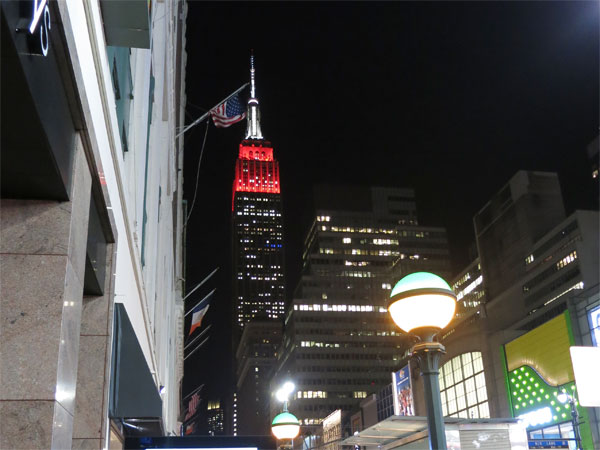 そして、着いた初日のエンパイア・ステート・ビルディングは赤色に!
