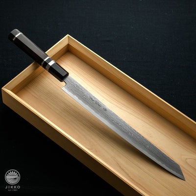 別誂 青鋼ダマスカス 両刃刺身切付 330のレビューを書く