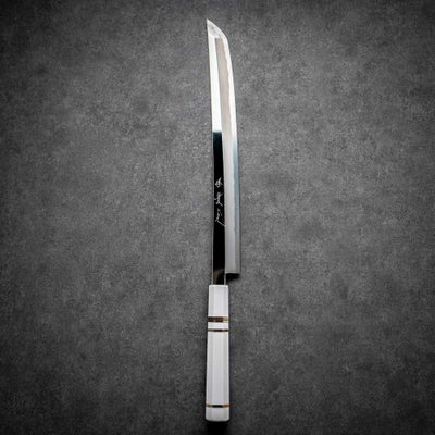 【刃仕上】鏡面・本刃付け・白柄銀巻柄 ※包丁の刃は付いていませんのレビューを書く