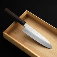 父の定年退職のお祝いとして、購入しました。 定年後は料理を趣味にしようとしていたので、包丁をプレゼントすることに。 父はモノに非常にこだわるタイプなので、デザイン性や切れ味、高級感などトータルで加味した結果、こちらの商品を選びました。 現物を見てみると、刃の艶や全体のシルエットなど、非常にかっこよく申し分ない商品でした。もちろん切れ味も抜群。片刃だと少し使いづらいかと思いましたが、それも全く問題ありません。 他社品も多数検討しましたが、他社よりも實光ブランドが秀でていると感じました。 實光のコールセンターに電話をして色々包丁についてご質問させていただきましたが、非常に親身にご対応いただきましたので、その点でも實光はおすすめです。 父もとても喜んでおり、大変満足な買い物ができました。 ありがとうございました。