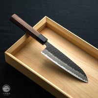 妻の誕生日プレゼントに購入しました。 受け取った妻も最初はプレゼントが包丁・・?っと怪訝そうな顔でしたが、 プレゼントなんだから普段自分では買わないものを貰うのも一考だろうと伝えると 納得した様子でした。 使用してみた感想は、その切れ味の良さに大変驚いておりました。 今までは安価な包丁を研いで使用してましたが、それらが使えなくなるぐらいとの事で、大変喜んでおりました。(ふいに包丁のプレゼント、結構ありだと思います。) 又、鋼の為、錆びやすいのかと思いましたが、 4カ月使用して特に錆は発生しておりません。 月に1回私が趣味で包丁を研いでおりますが、刃を付けるのに多少時間はいるもののホームセンターで売っている安価な包丁に比べ段違いに研ぎやすいです。 砥石は#100台~#10,000台までそろえておりますが、#1000~#6000で十分な程切れ味が戻ります。(本当のところ、高級包丁を研いでみたいがためにプレゼントしたのが事実ですが、妻も私もお互い満足しております。) 大変高価な包丁ですが、それに見合う価値は十分にあります。 ですが、あくまで自己満足です。 くれぐれもプレゼントして、私に一生料理を作り続けろと?言われた際には返答をお間違えの無いようにだけ注意してください。 -