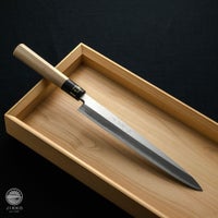 料理人になって、50年になります。本当は、フグ引きが欲しく、〇マゾンさんに発注かけてたのですが、在庫なく一旦は、あきらめていました。が、ある日 實光刃物さんを見かけて、とりこになり、どうせ買うならと、タコ引き包丁にしたのですが、思った以上に切れ味抜群で、とても綺麗な出来上がりに、二度も三度も驚かされる次第です。いつ来るか、待たされ感がすごくありましたが、切れることは勿論のこと、實光刃物さんの親切丁寧な対応にも、驚かされるました。初めての試みでしたが、誠実さとか、いっぺんに虜になりました。料理を作るのがもっと楽しくなりました。これからも、よろしくお願いいたします。