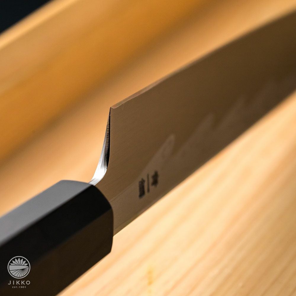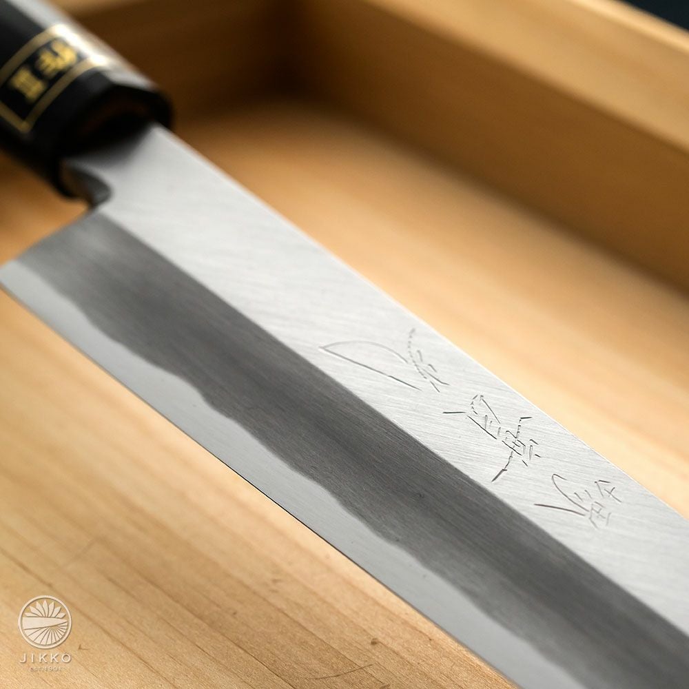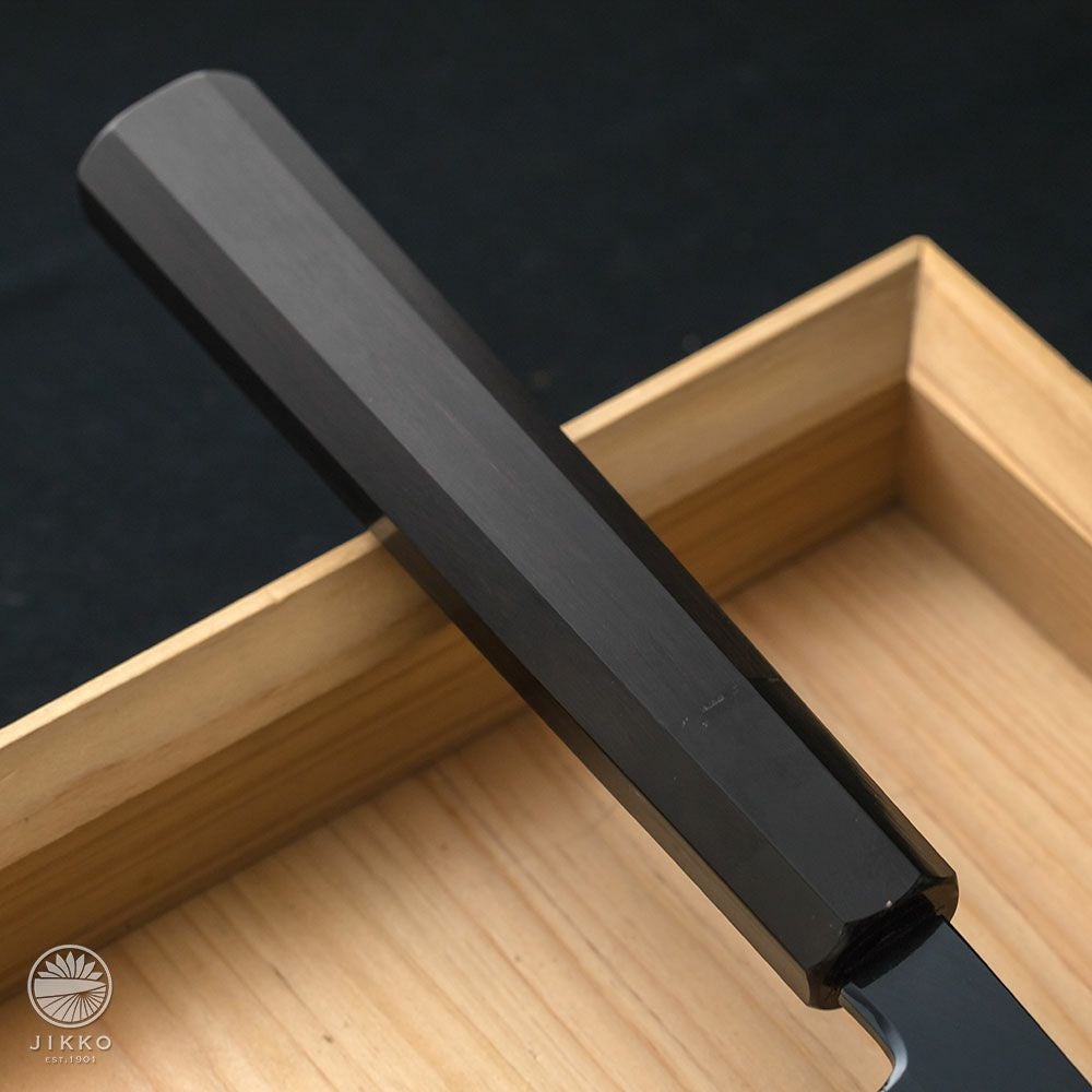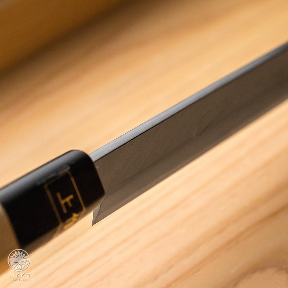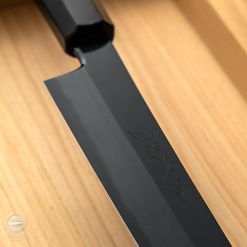 他の画像を見る 【銀座 銀三】 先丸刺身 銀3 先丸 黒染 当店価格 ¥ 71,060 税込 +詳しく見る 刃の表面を黒く染めているので、カッコいいデザインに仕上げています。サビにくく切れ味が良い銀三を使用しています。サビにくい包丁をお探しの方にお勧めです。 詳細を見る お気に入りに登録する